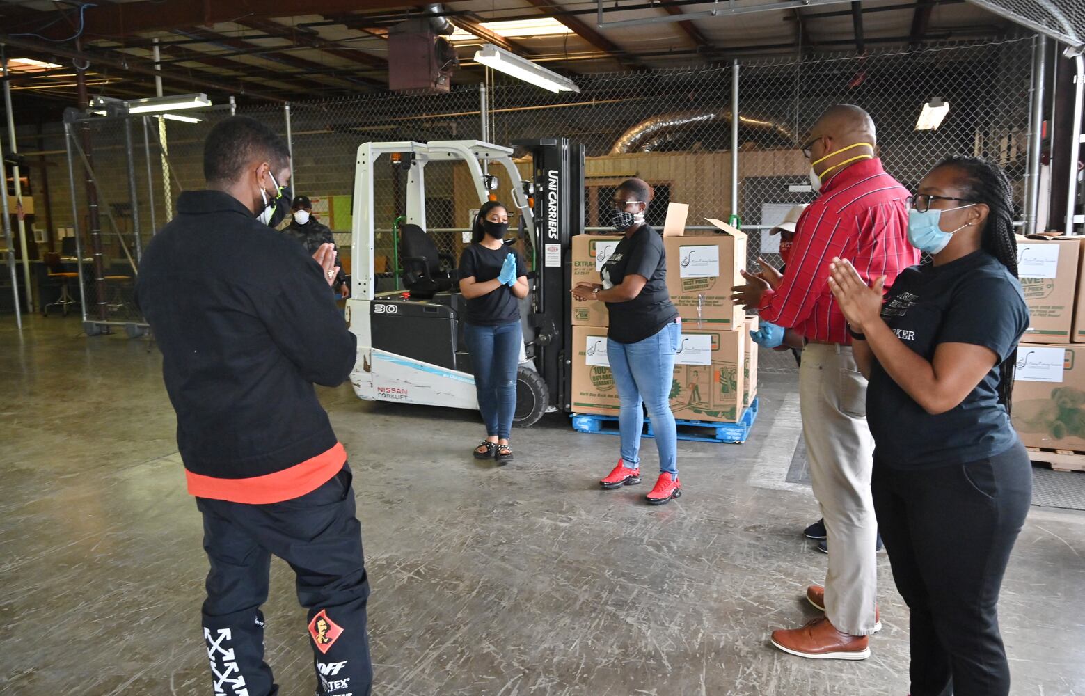AJC PHOTOS: The singer donated 350 plant based healthy meals to Clayton County residents in Jonesboro on Thursday, May 21, 2020.