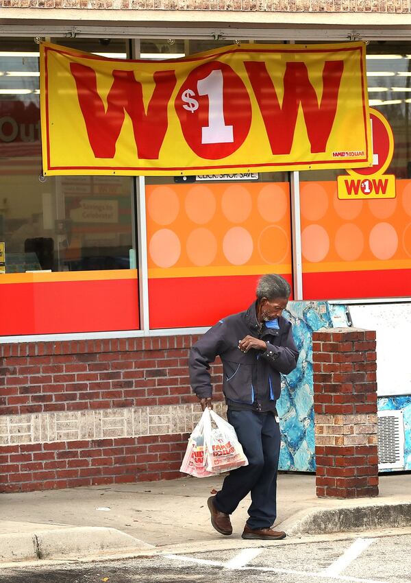 At one intersection in suburban DeKalb County, it takes less than five minutes to walk from the Dollar General to a Family Dollar. Walk another few minutes across Covington Highway, and you’ll hit a Dollar Tree.