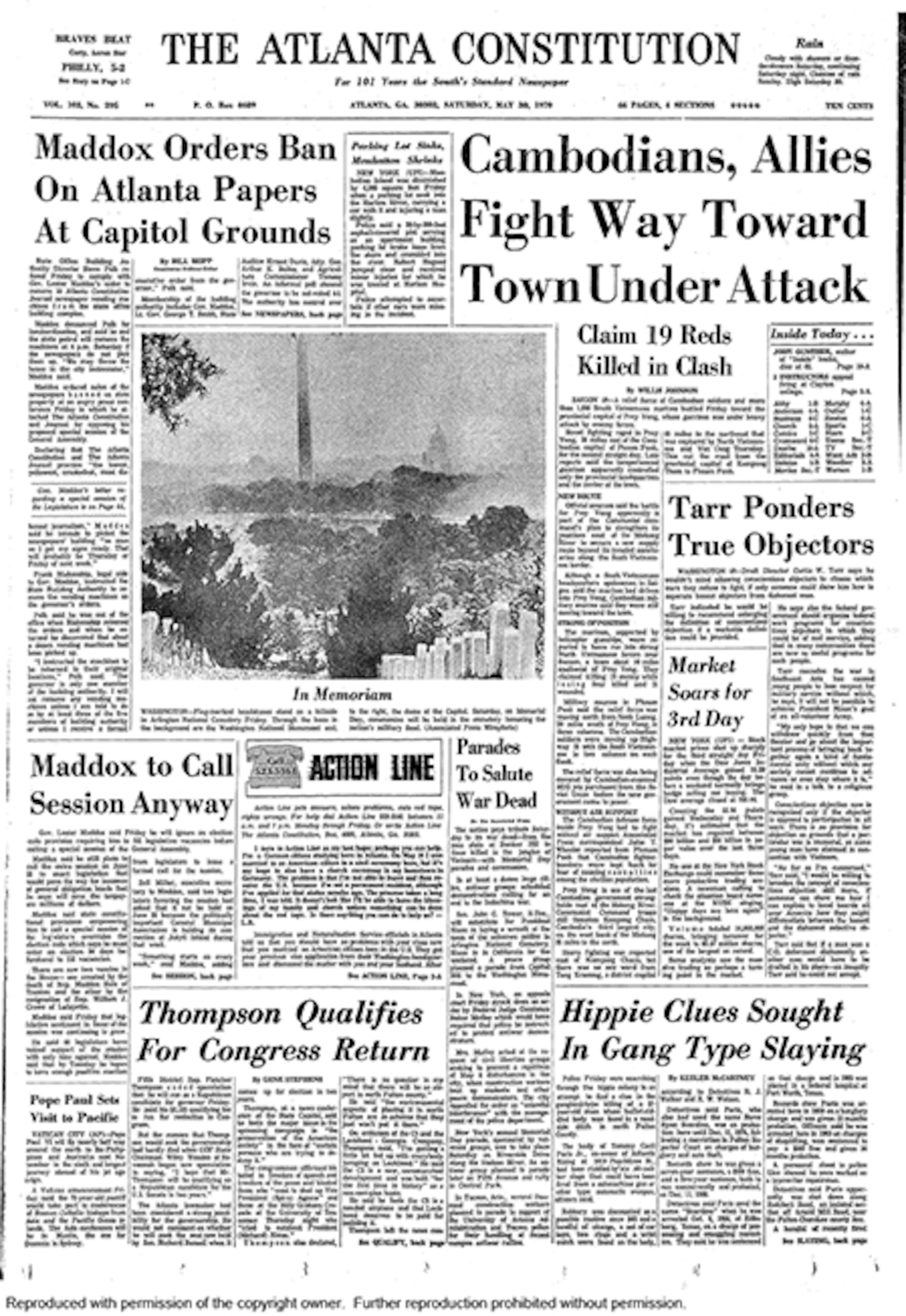 Today's AJC Deja News comes to you from the Saturday, May 30, 1970, edition of The Atlanta Constitution.