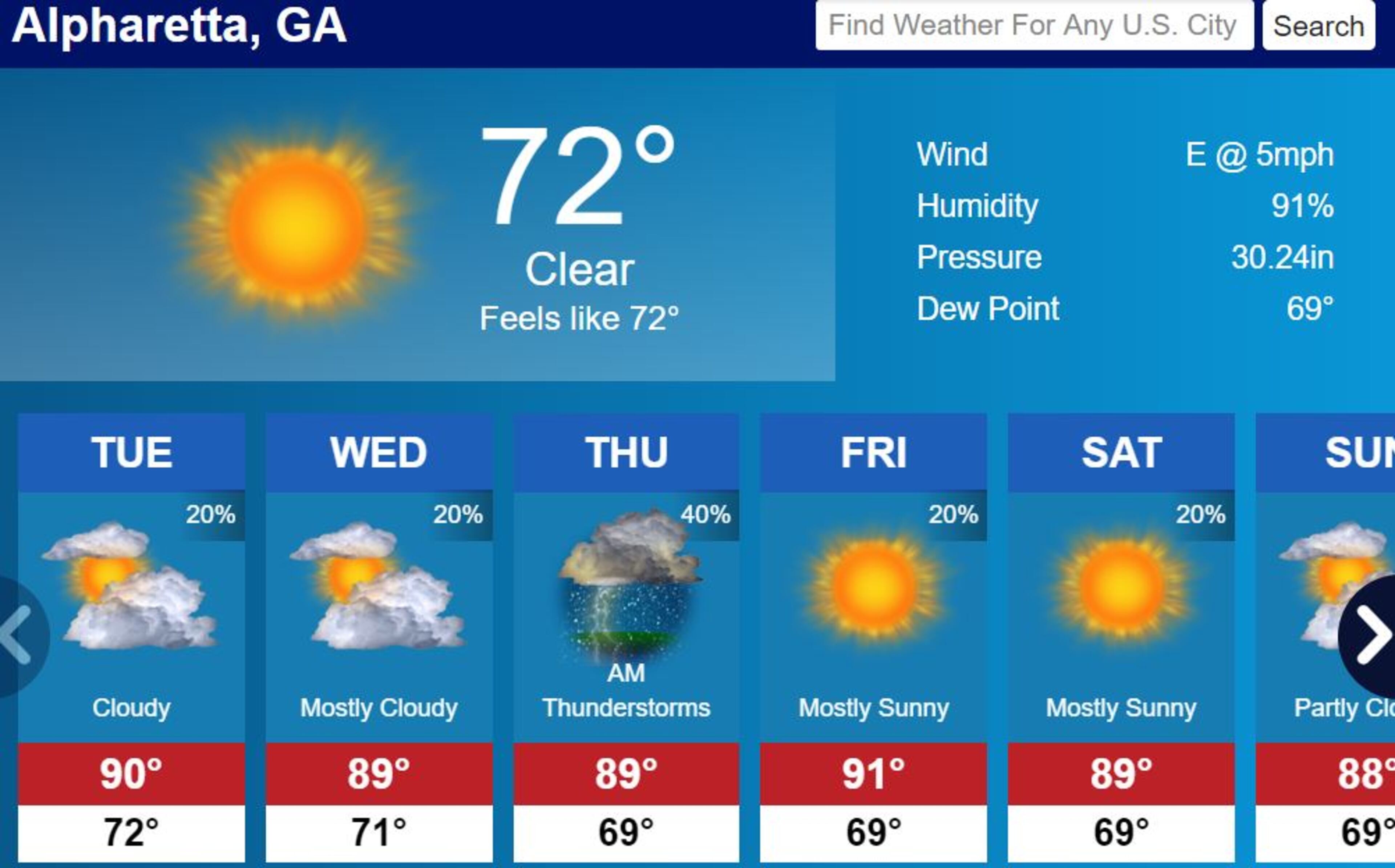 North Fulton weather: Warm temperatures, low rain chance Tuesday
