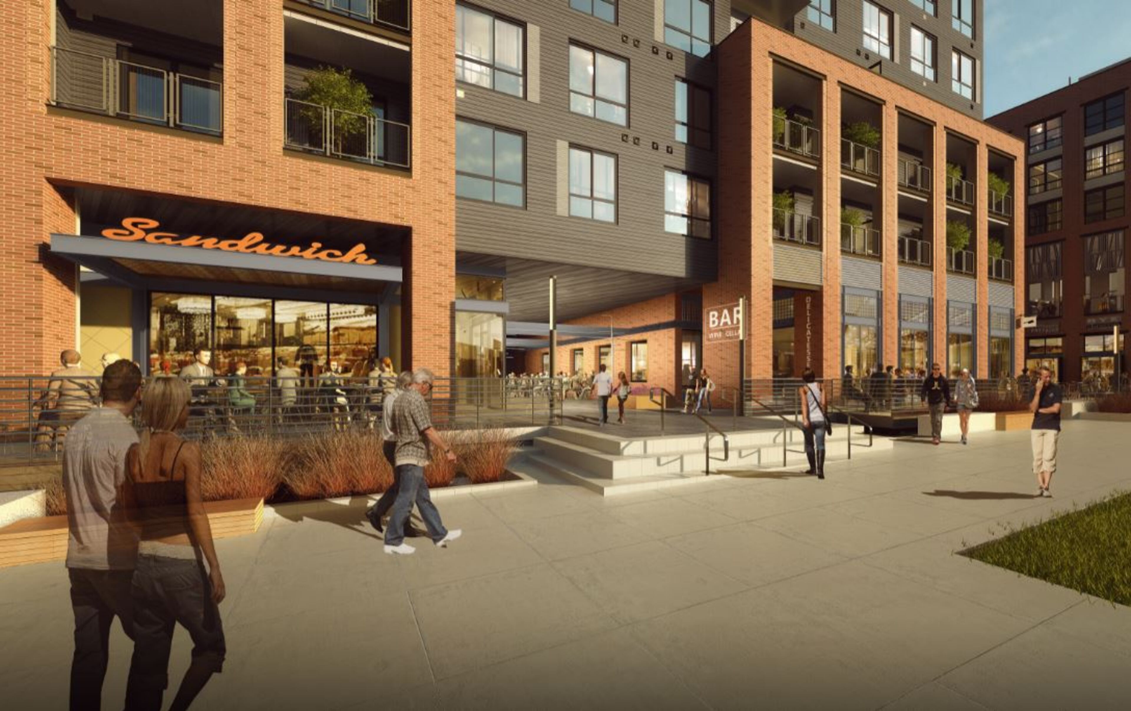 The five-story building will include 320 apartment homes with studio, one-, two- and three- bedroom offerings, plus 18,400 square feet of retail space on the street level. It will also have a 477-car, six-story parking deck and 24 surface spaces.
