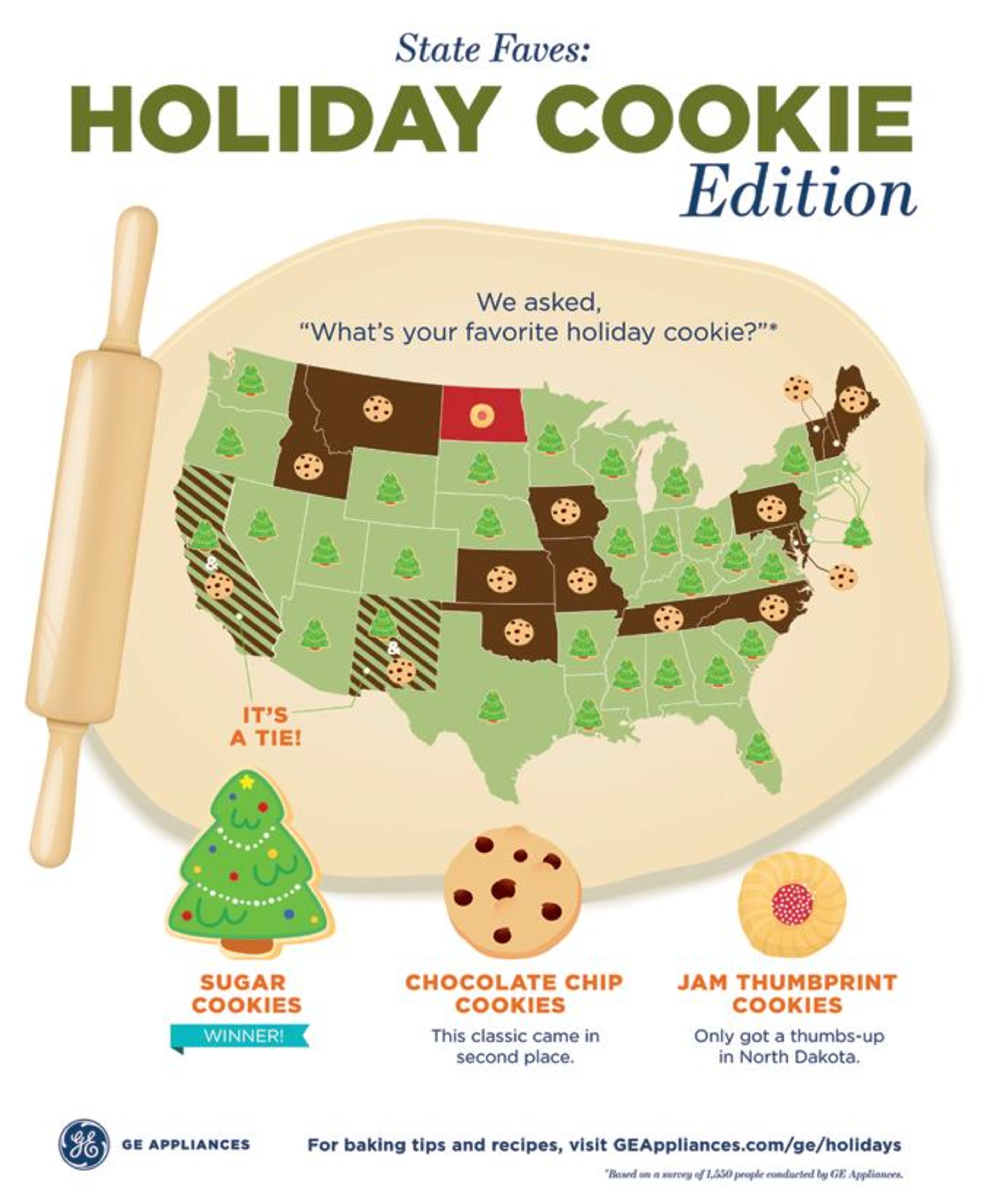 According to a recent survey from GE Appliances of 1,550 people across the continental United States, sugar cookies make the most hearts skip a beat.