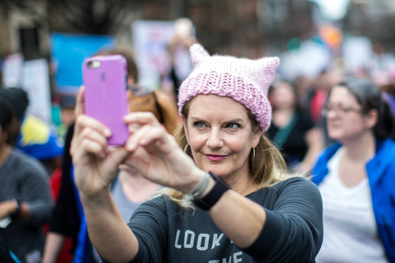 People march in the Atlanta March for Social Justice & Women, Saturday, Jan. 21, 2017, in Atlanta. BRANDEN CAMP/SPECIAL