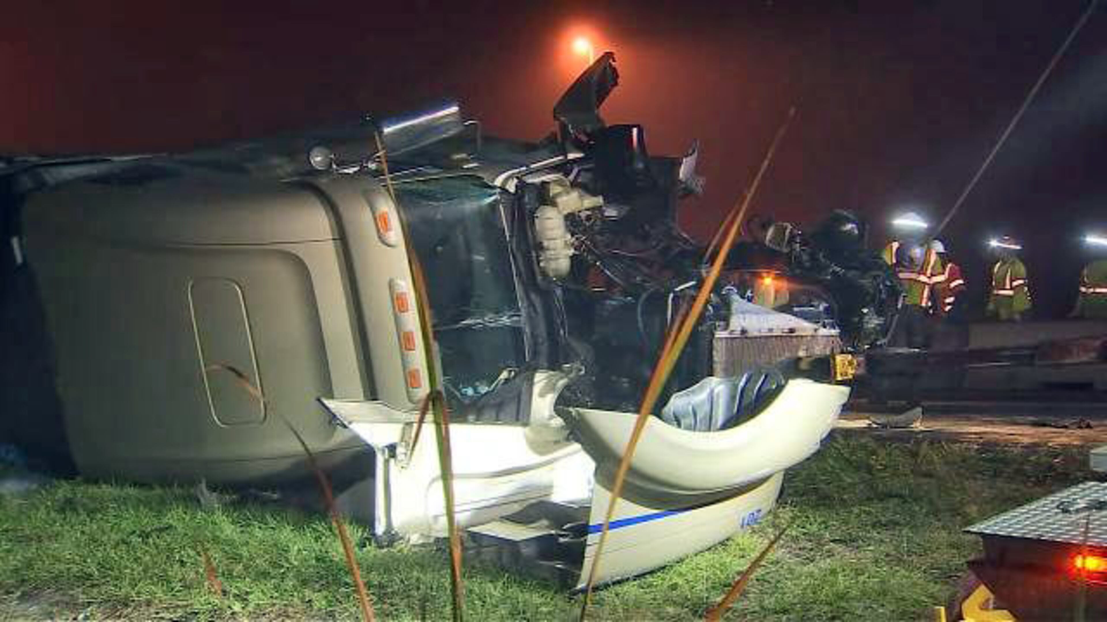 A tractor-trailer overturned early Wednesday, spilling bags of salad along Florida's Turnpike in Orange County, the Florida Highway Patrol said.