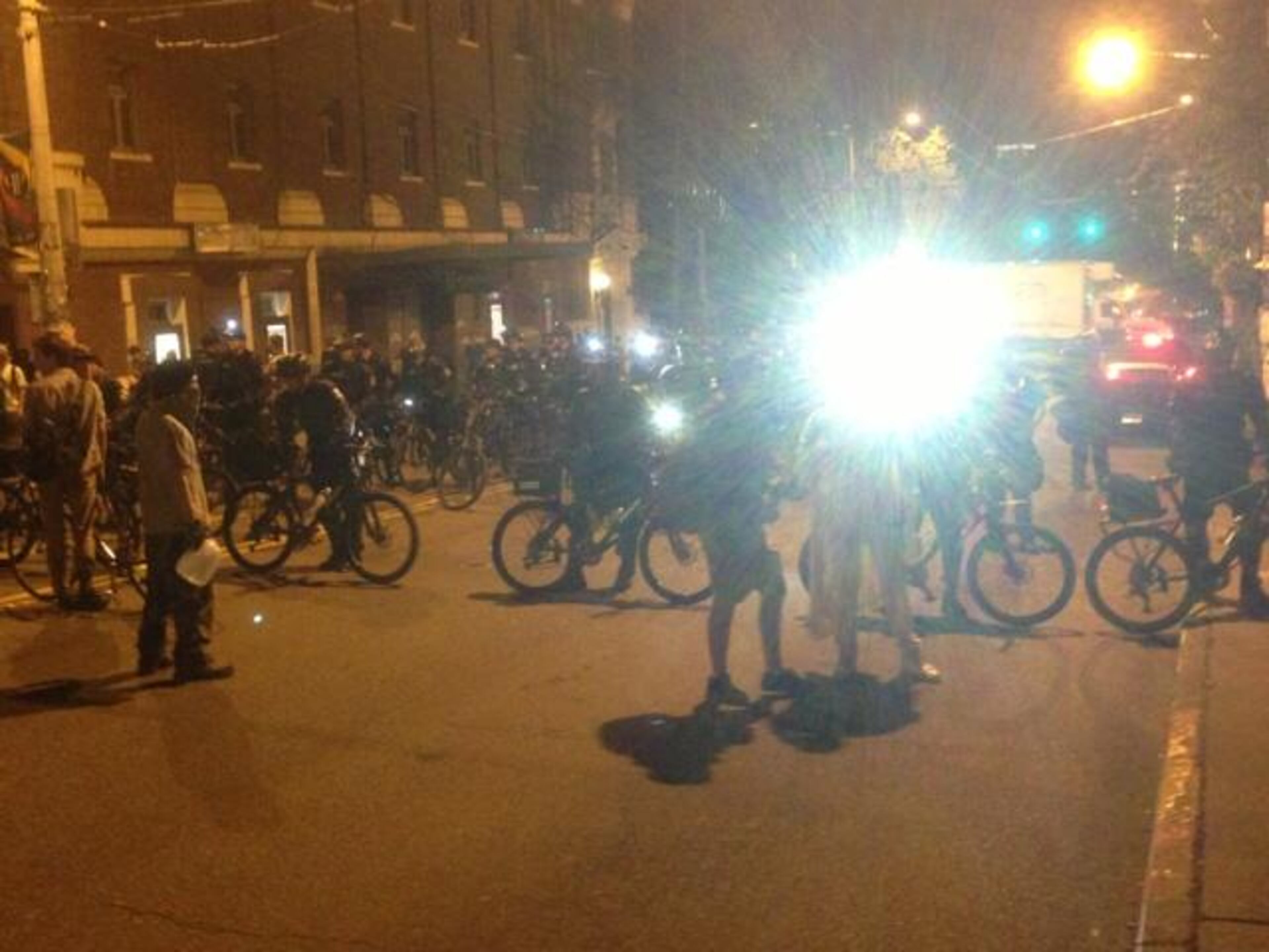 Police form a line during May Day activities Thursday, May 1, 2014 in Seattle. Police have made several arrests and fired pepper spray as anti-capitalist marchers meandered through Seattle several hours after hundreds of peaceful demonstrators took part in a May Day march in support of immigrant rights and a boost in the minimum wage. (AP Photo/Ted S. Warren)
