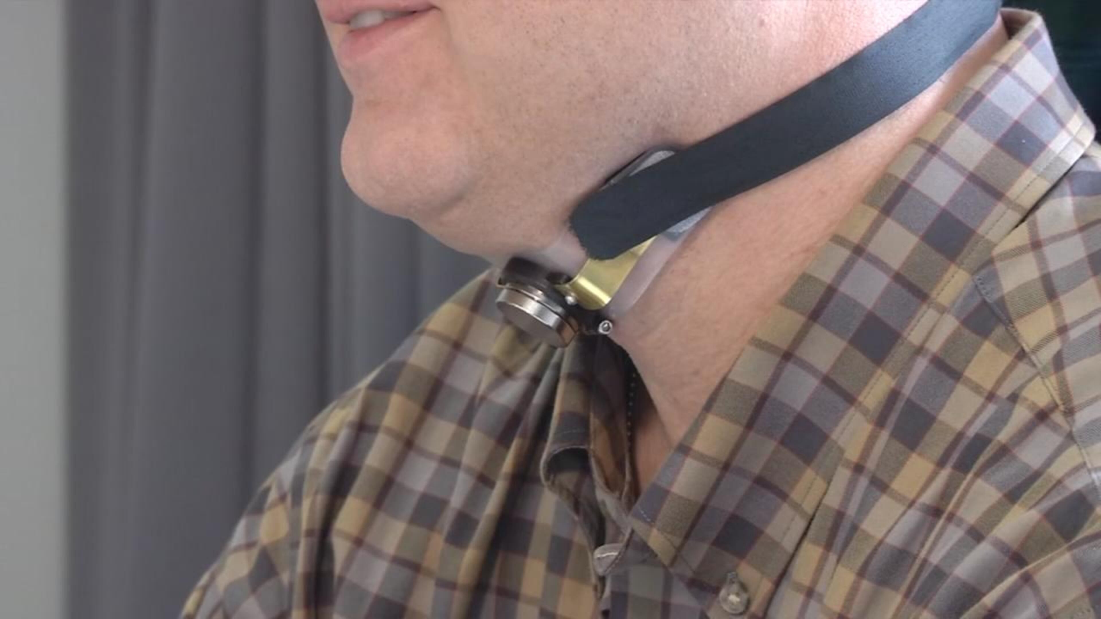 At night, the patient puts on a collar, containing a second magnet.