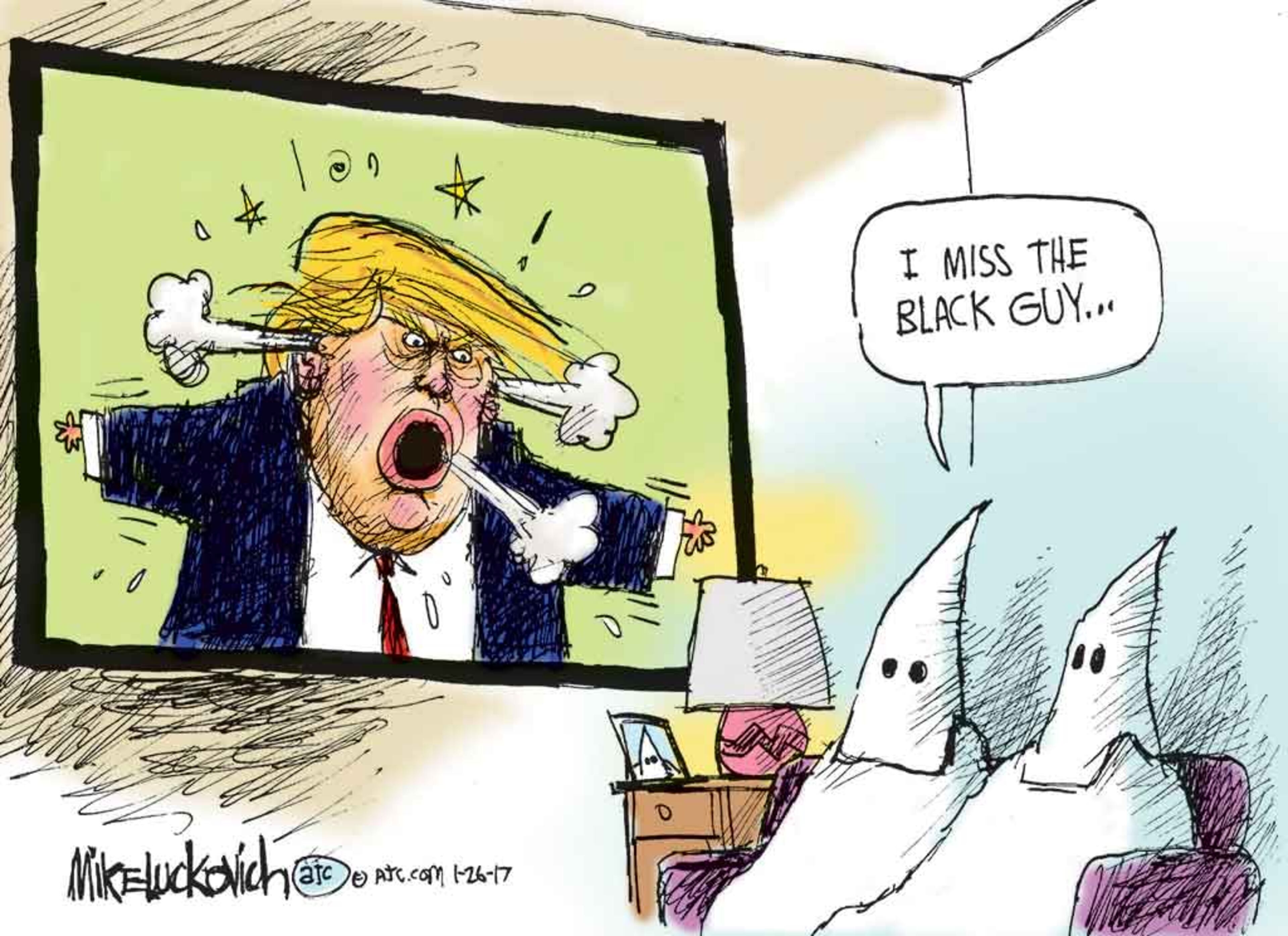 "I don't know why, but I like this one a lot. President Trump, to me, so often seems unhinged at times. I just thought it would be funny to have some Klansmen saying they missed Obama because of Trump's antics."
