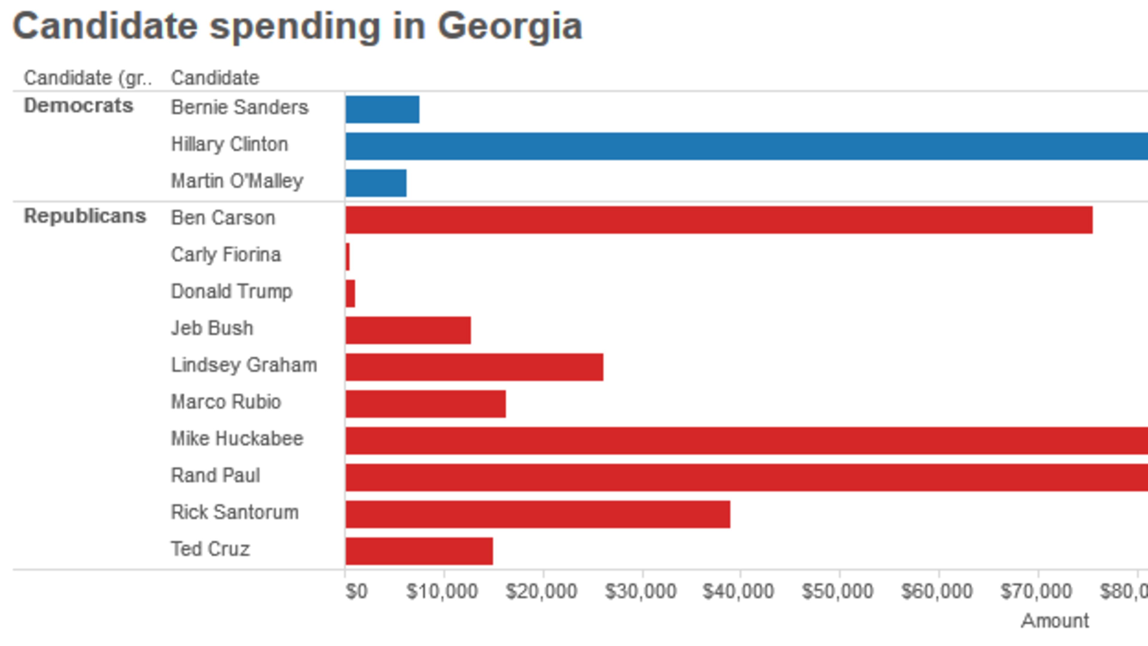 Jeb Bush and Hillary Clinton have dominated the fund-raising race in Georgia, but it's Republican Mike Huckabee who is the heaviest spender in the state, according to an analysis of Federal Election Commission data.
