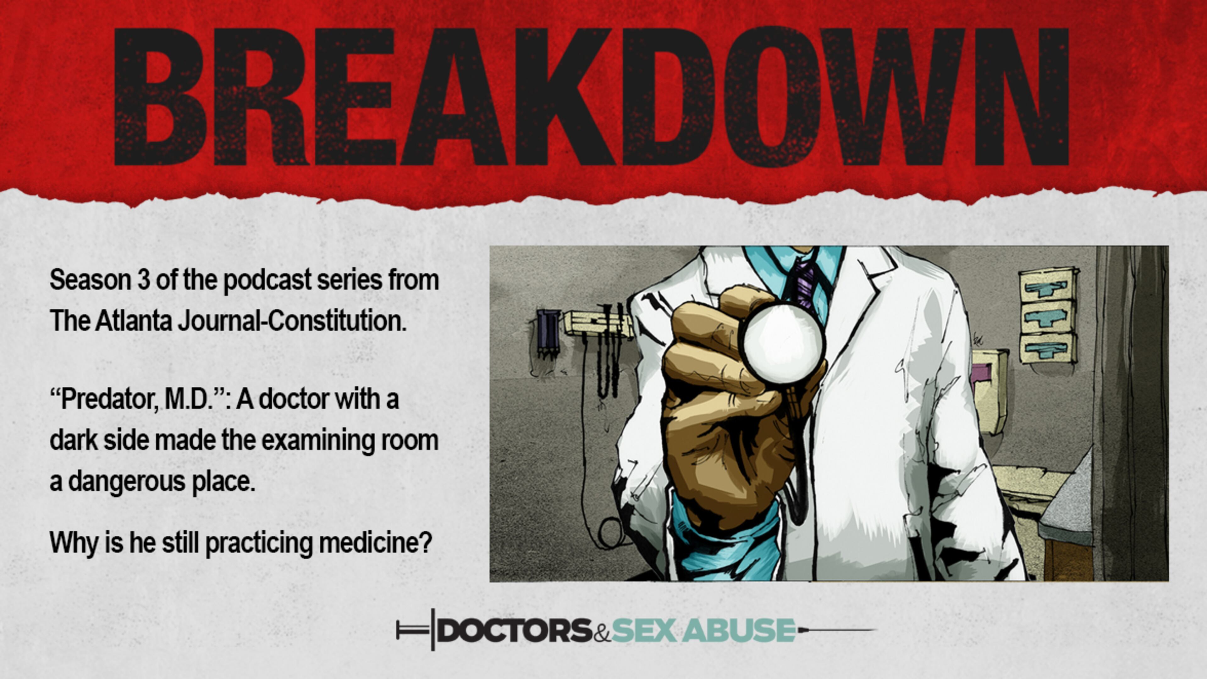 The AJC's Johnny Edwards explores that question in Episode 3 of Season 3 of our exclusive podcast "Breakdown." As The Atlanta Journal-Constitution has shown in its prize-winning investigative series, Doctors & Sex Abuse, physicians accused of such behavior with patients or employees often continue practicing medicine.