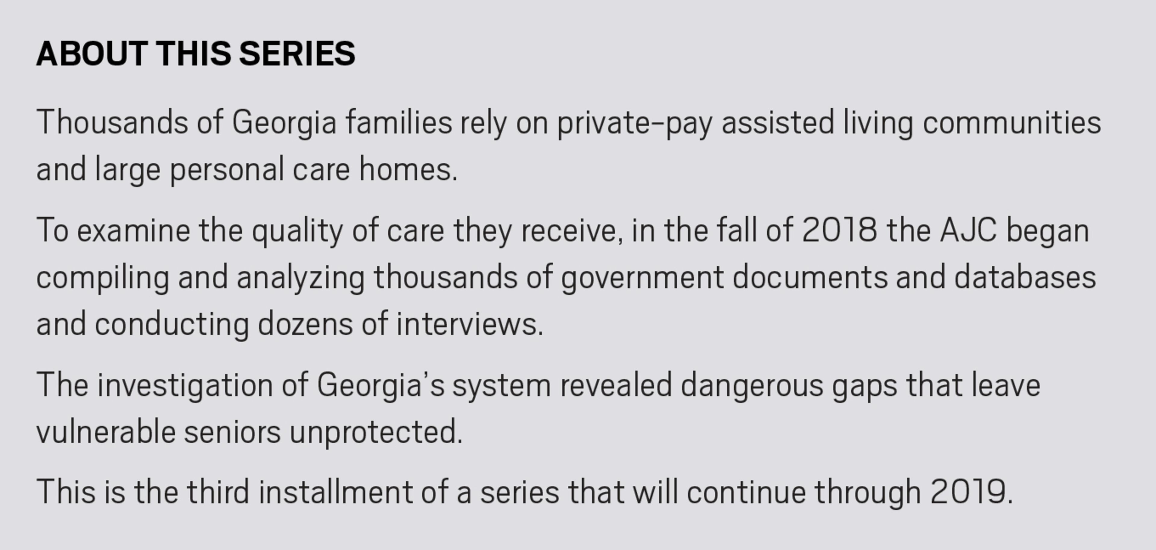 That kind of story has been repeated at dozens of homes throughout Georgia, an Atlanta Journal-Constitution investigation has found.