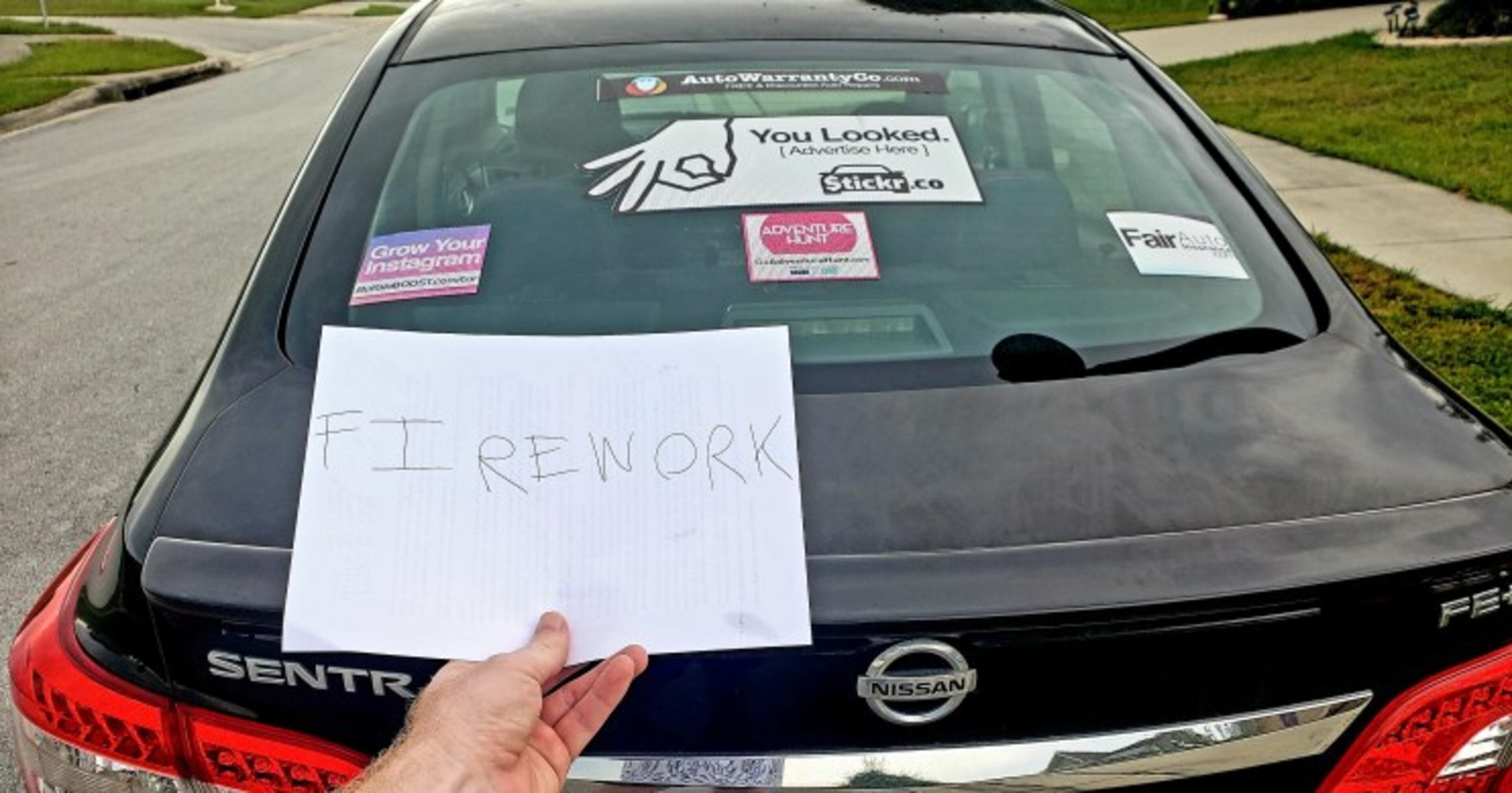 Verification is easy. Each month, Stickr’s website provides you with a word (in this case, “firework”), which you must write down on a piece of paper. You then take a picture of your car that includes a clear visual of your decal(s) and the piece of paper and upload your photo on Stickr.co.