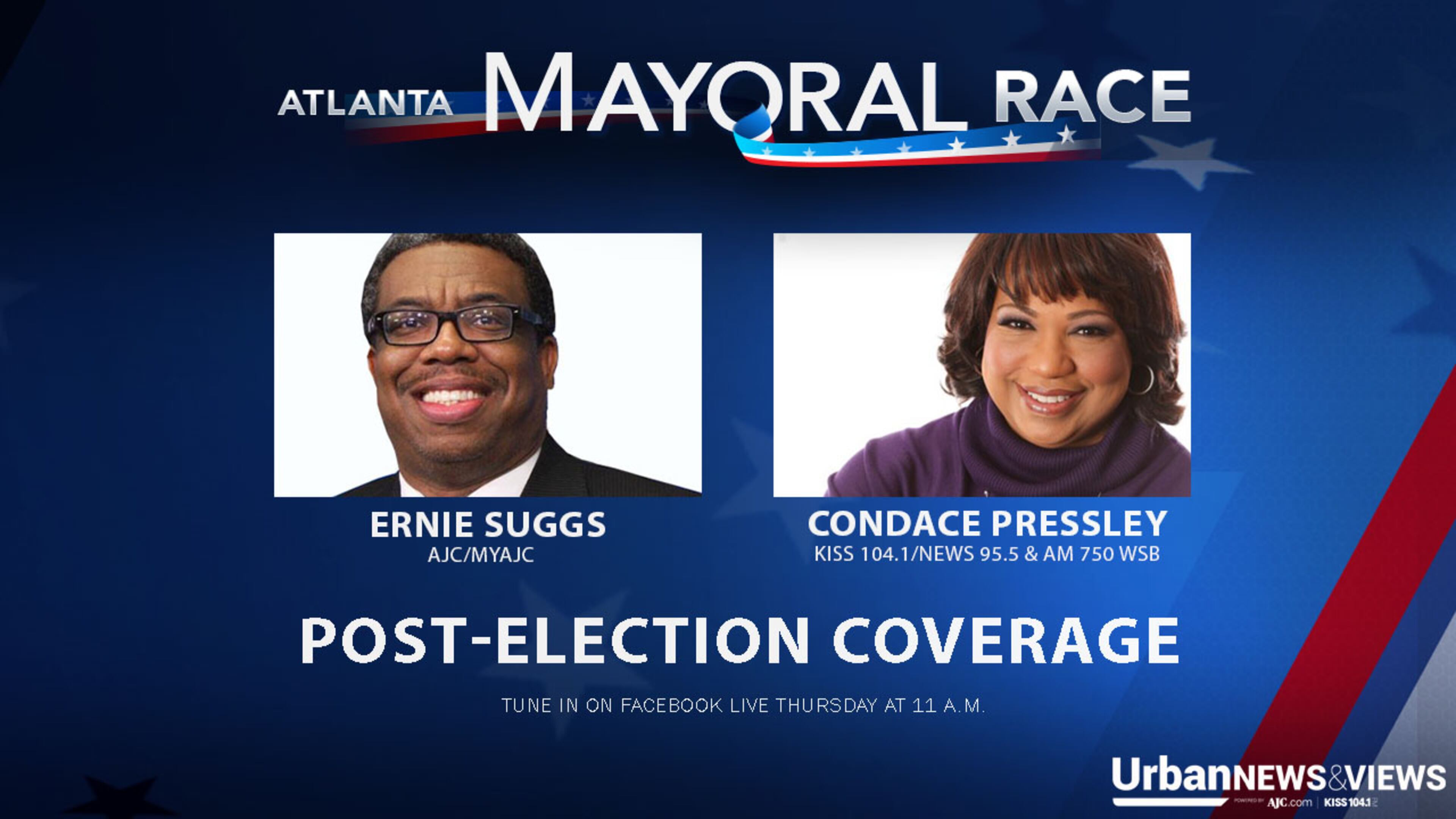 POST-ELECTION COVERAGE: Join the AJC's Ernie Suggs and Condace Pressley of Kiss 104.1/News 95.5 & AM 750 WSB for a special Facebook Live on Thursday at 11 a.m.