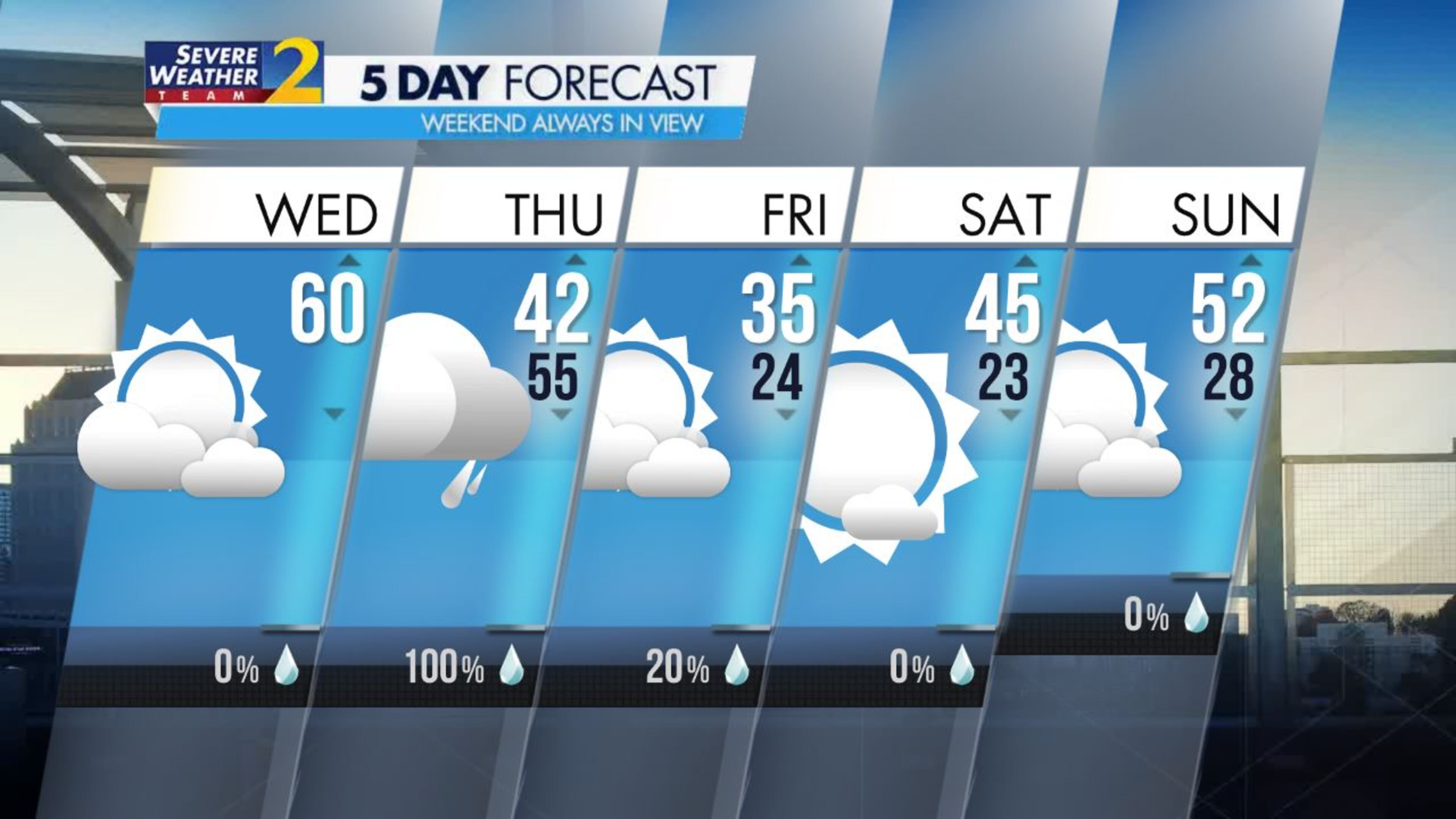 Despite the clouds, Wednesday will be dry, according to Monahan. There is no chance of precipitation in the forecast.