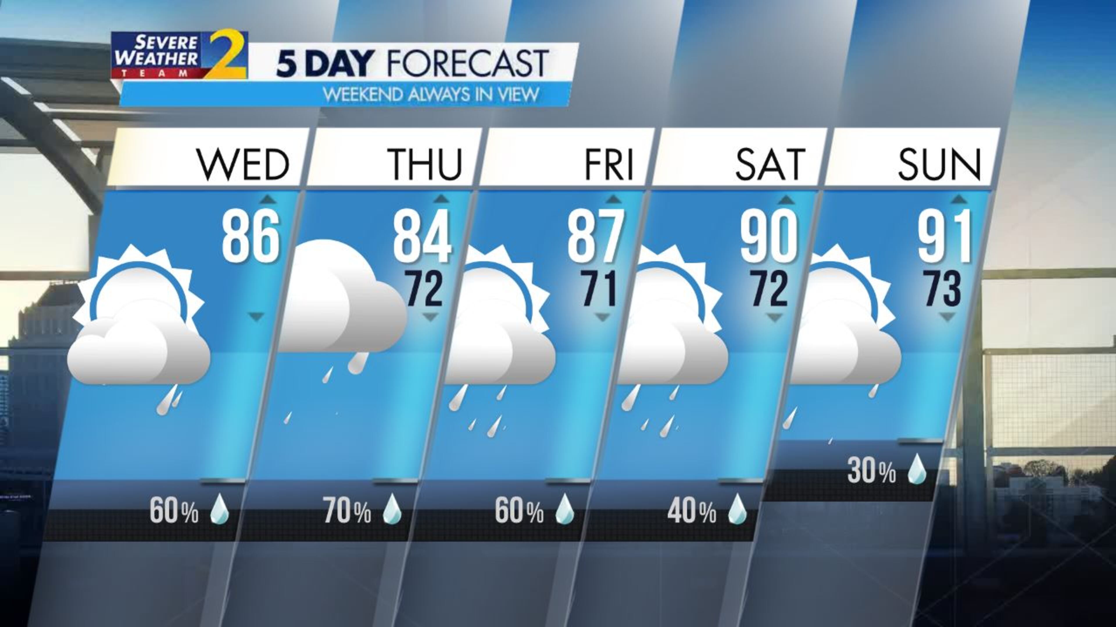 Drier weather is on the way for the weekend, he said. Rain chances drop to 40% on Saturday and to 30% on Sunday.