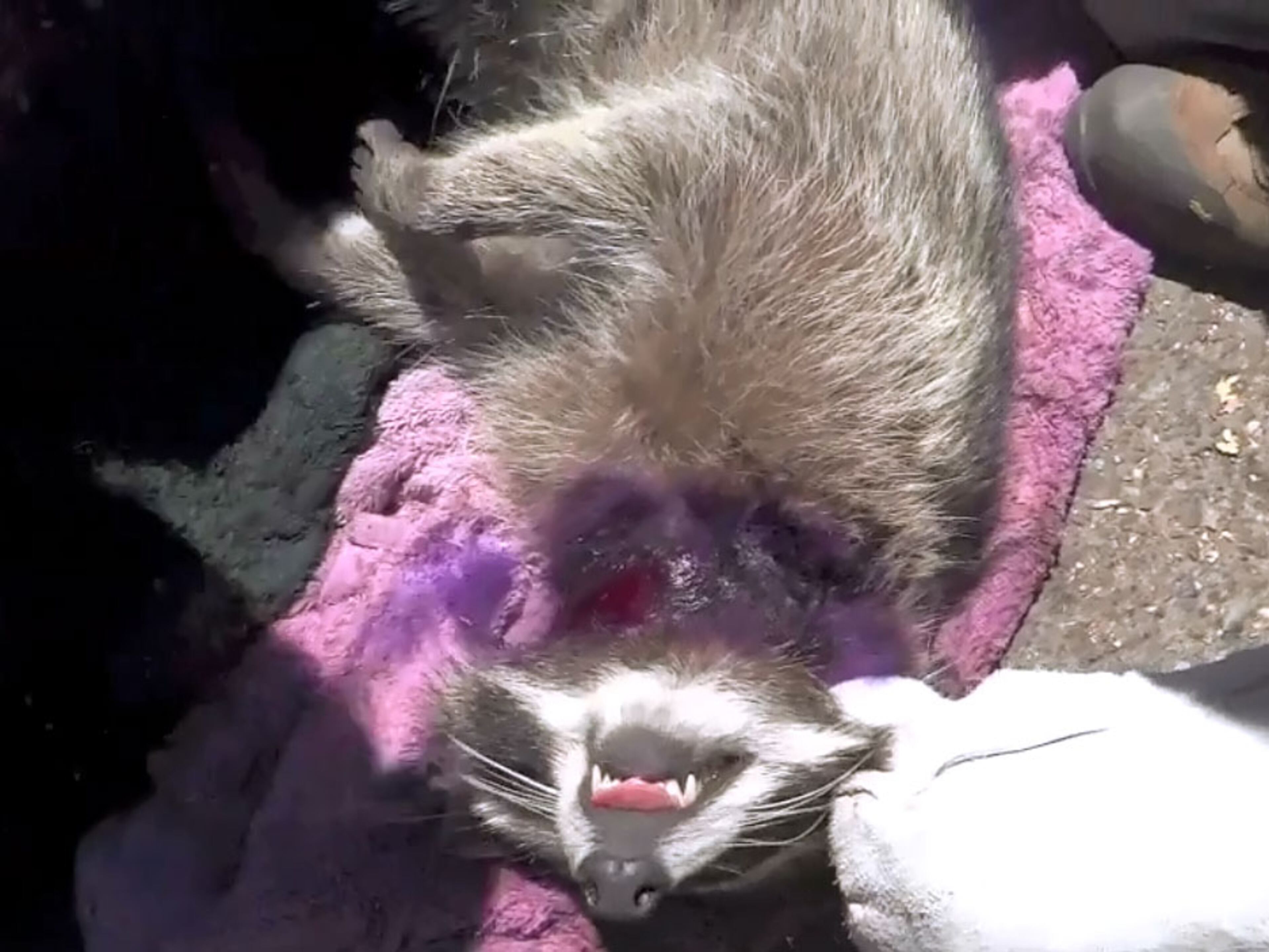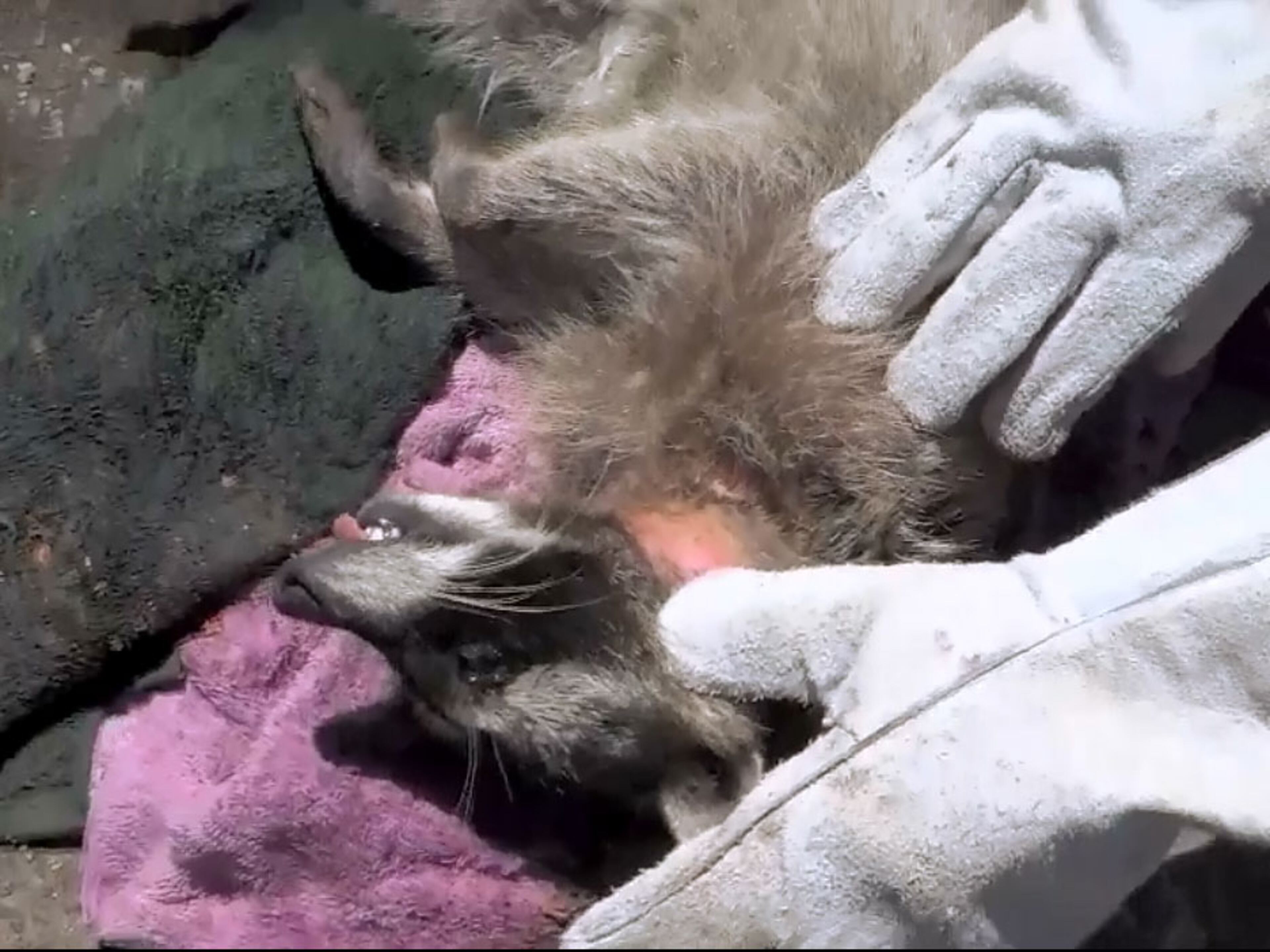 Check out these photos showing how workers from Wildlife Emergency Services in Santa Cruz rescued this raccoon that got its head stuck in a metal storm drain Sunday.
