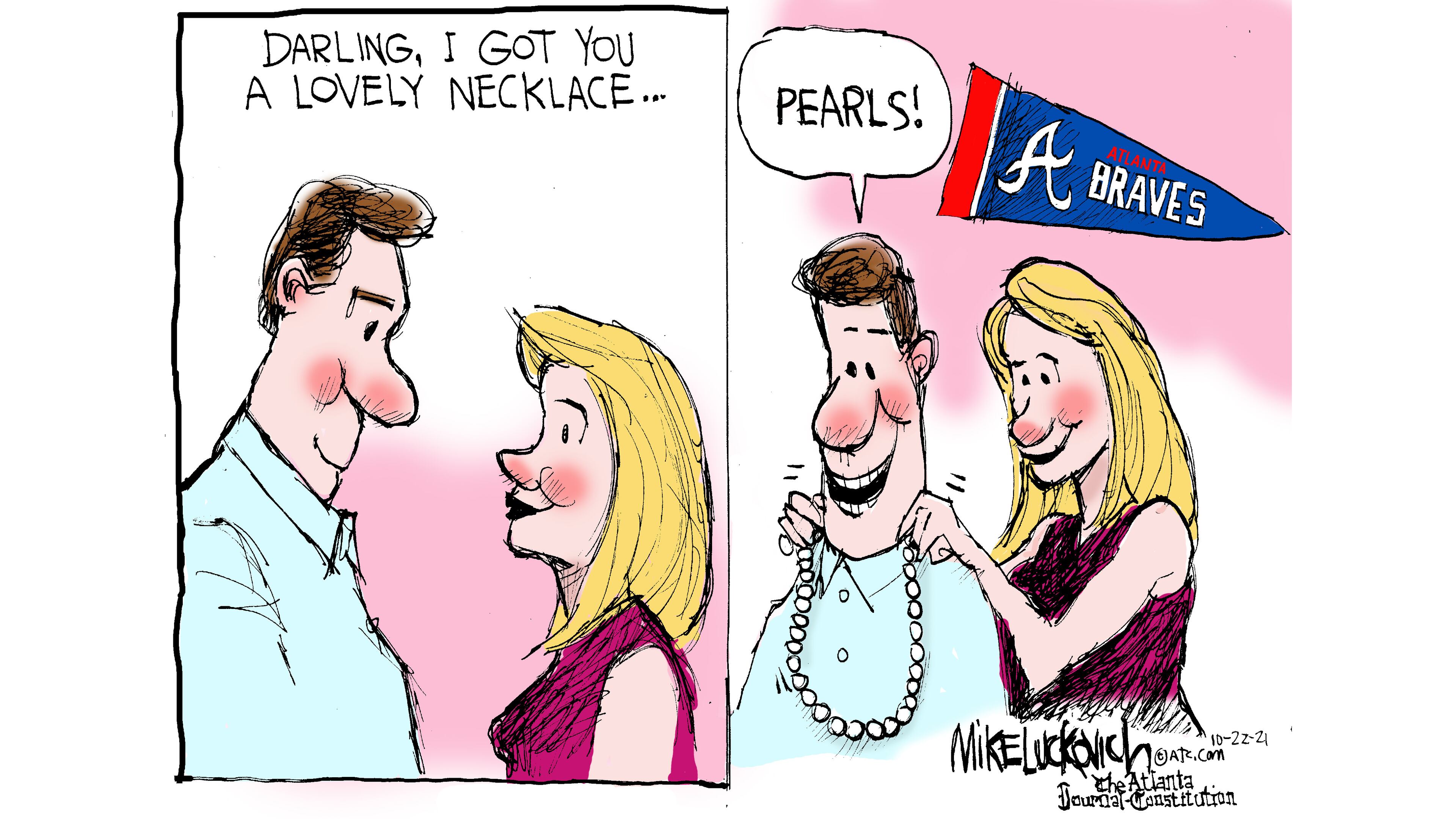 The first cartoon I did on the Braves in the series was about how Joc Peterson’s pearls had become a thing.