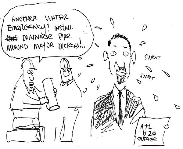 Mondays are the toughest day for me to come up with ideas because I haven’t been focused on the news as much. The Atlanta water main breaks caught my attention because it was a big local story. Andre Dickens has been a good mayor. Competent politicians make my job harder, so this was actually the first cartoon I’ve done on the Atlanta mayor. He was a little slow addressing this crisis, but he seems to have gotten things under control for the time being.