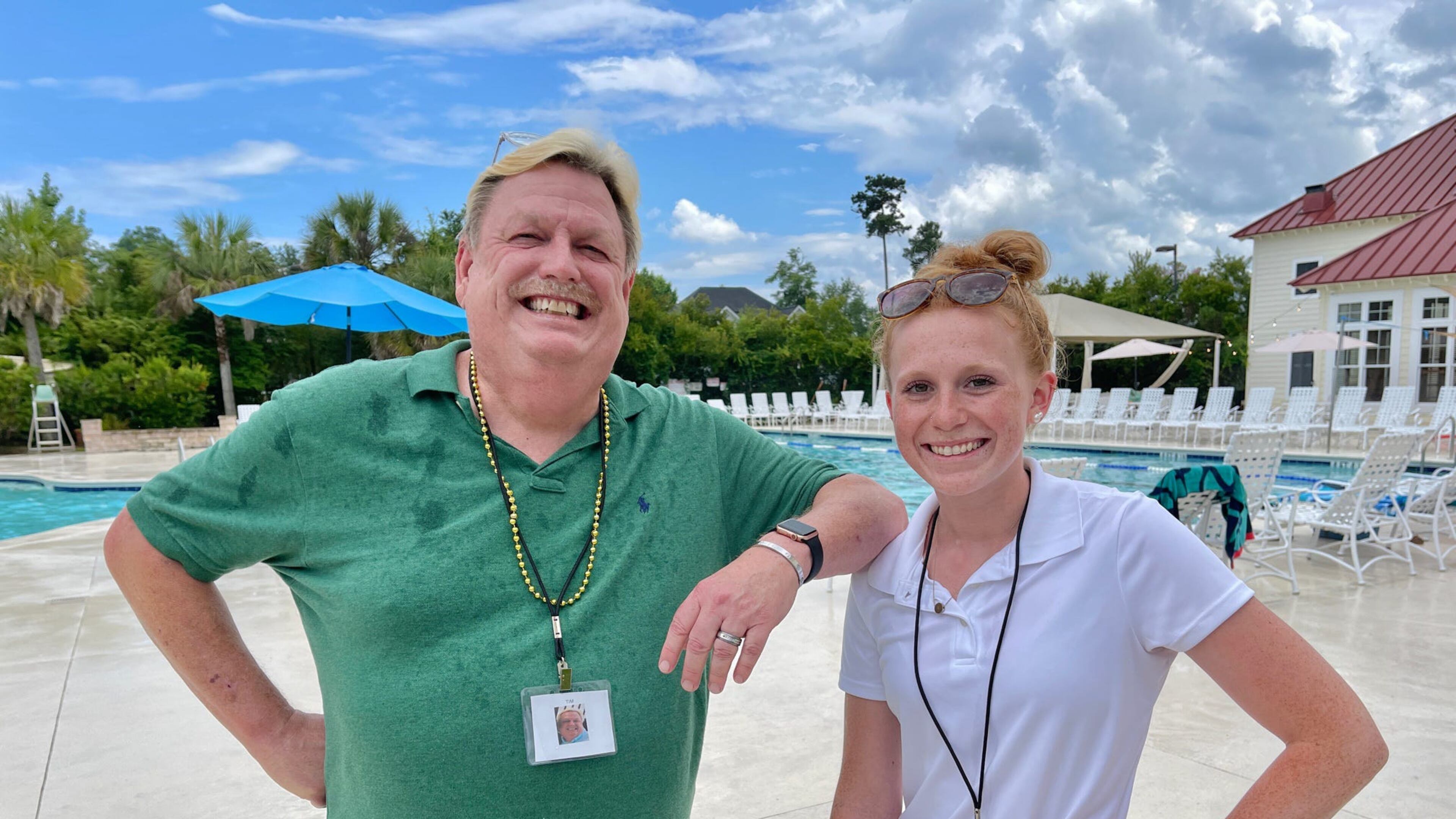 Walking in the massive clubhouse with me is one of the nicest, most genuine dudes I have met in the past year. Meet Tim Carlson! Retired from American Airlines and American Express, the Tucson, Arizona, native sends me selfie videos of him speed walking, almost working out, and generally making me laugh at anything he does. Little did I know — he sends those videos to other people — not just me!