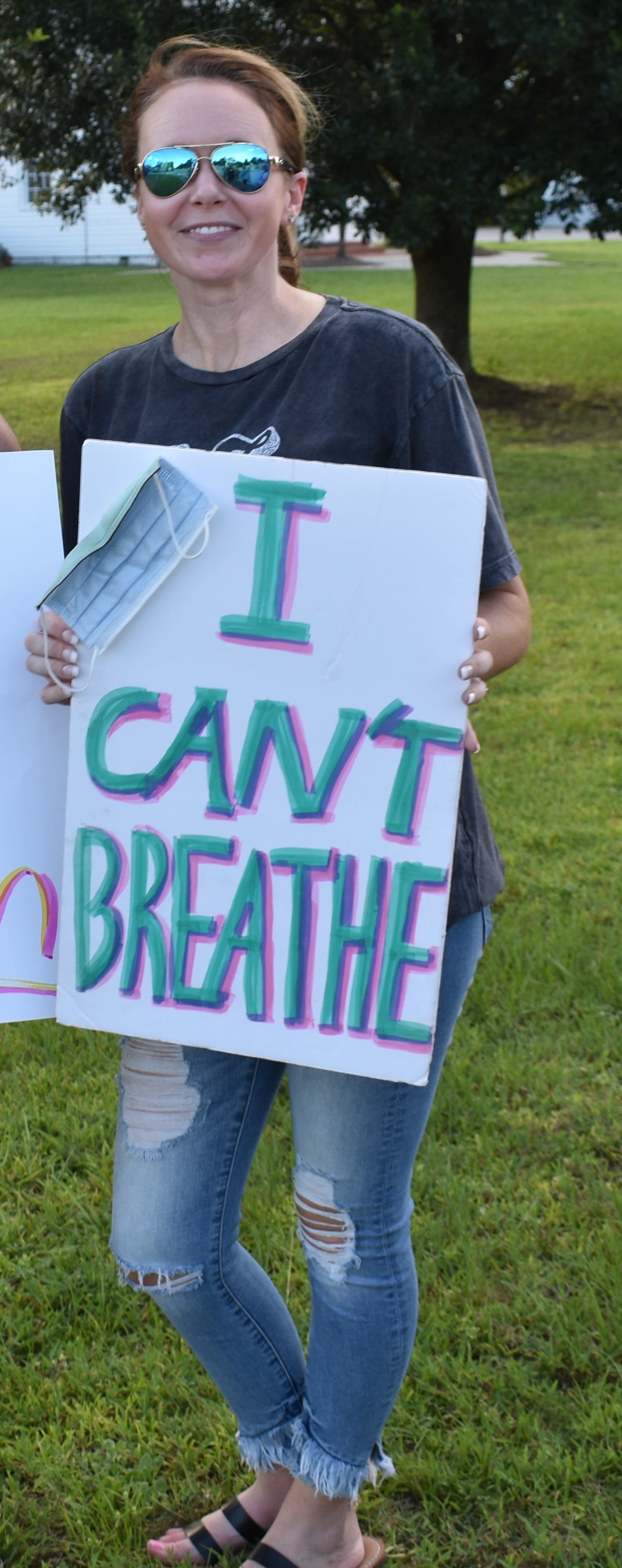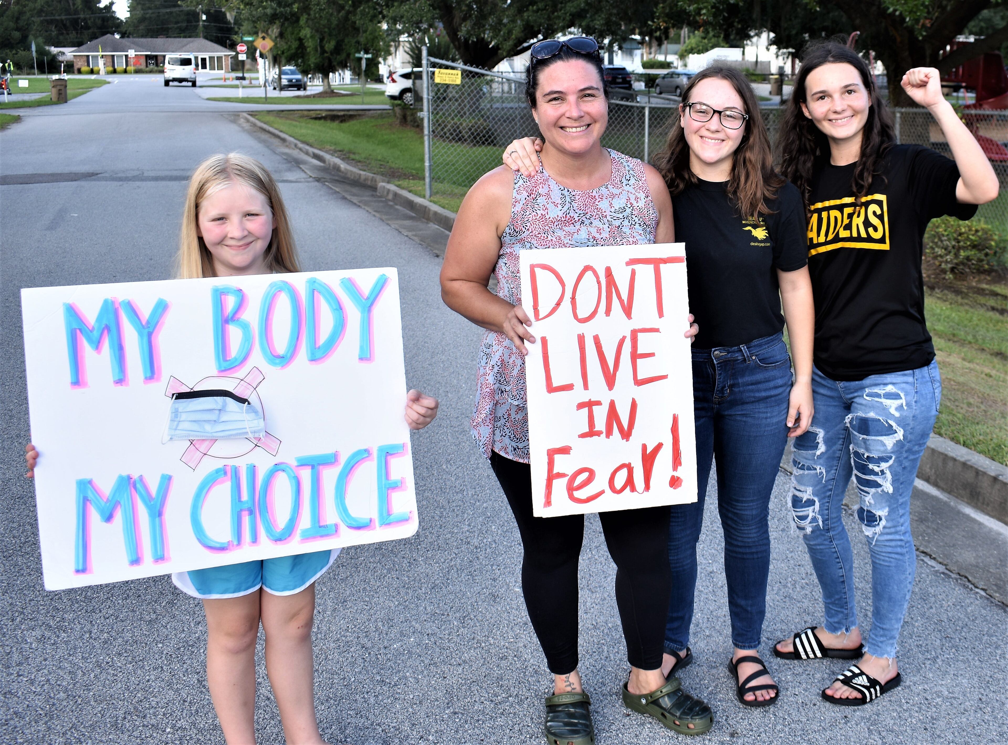 Crystal Moorman was one of more than a dozen people who gathered Thursday in Richmond Hill to protest the Bryan County school board's decision to institute a mask mandate for all students and staff.