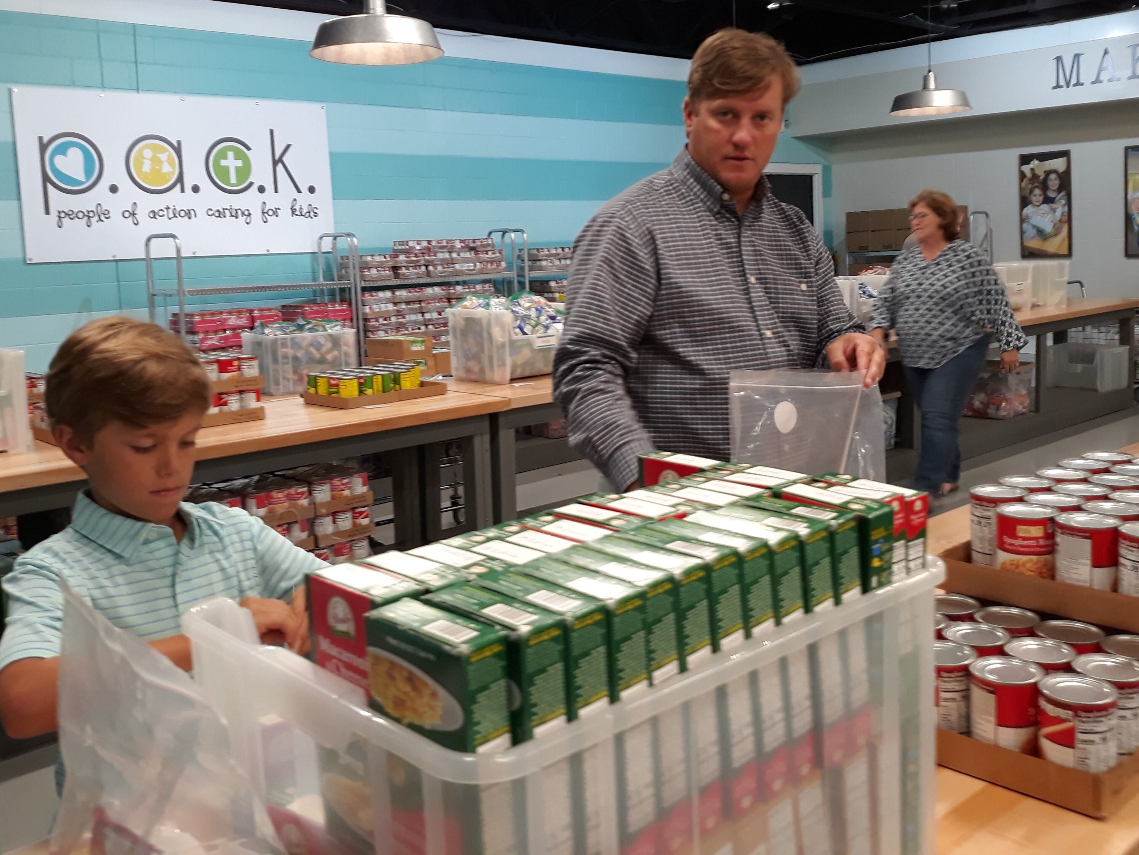 In addition to the cottages, PACK continues its year-round distribution of bags of food to area schools and community centers. Volunteers of all ages (including kids) are in the warehouse creating bags of food that are delivered to places where children can easily get them. "We made 16,000 bags this morning," Stone said on a recent Thursday. In addition to nonperishable food, each bag has a handmade card with words of encouragement created by volunteers.