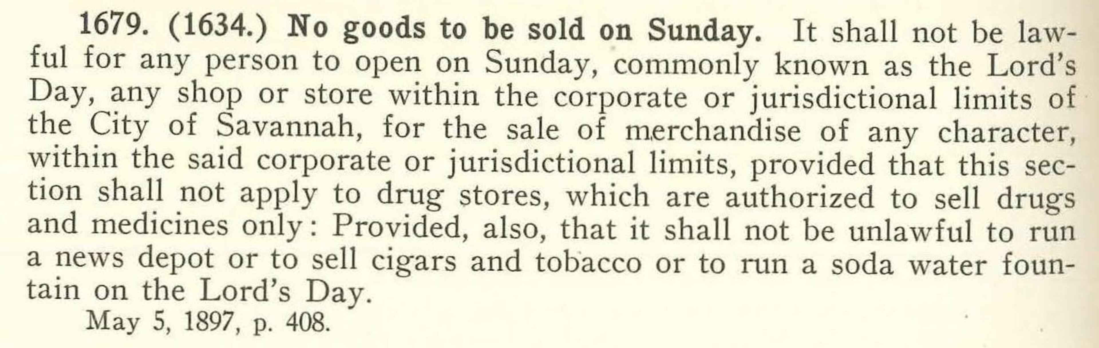 Savannah Archives: Soda water fountains closed on Sundays for alcohol sales?