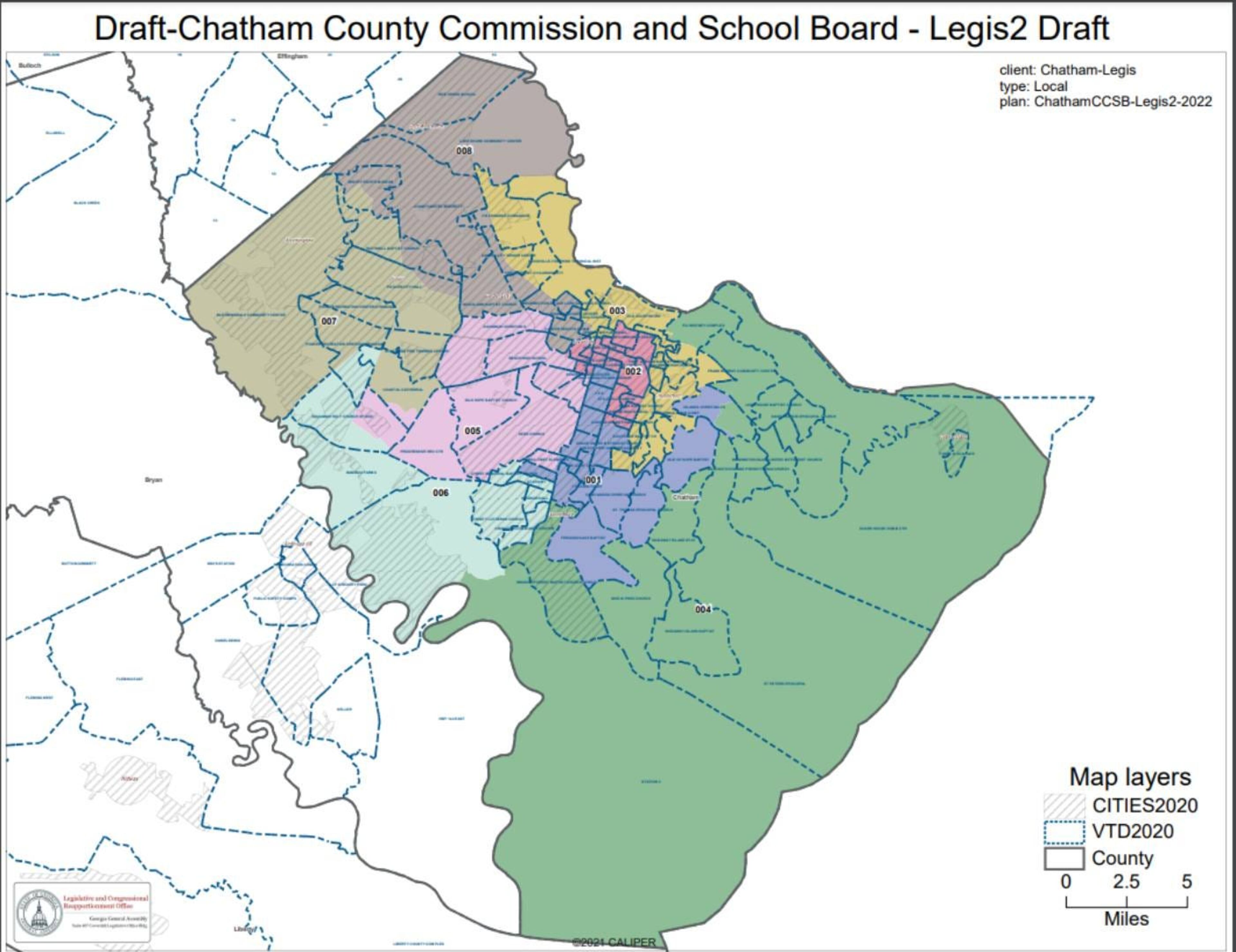 The map is the latest revisions of a draft originally drawn by the Chatham-Savannah Metropolitan Planning Commission. Two Republican county commissioners protested changes to their districts in that map, which led GOP state lawmakers to seek refinements and touched off a partisan disagreement with Chatham Commission Chairman Chester Ellis, a Democrat.
