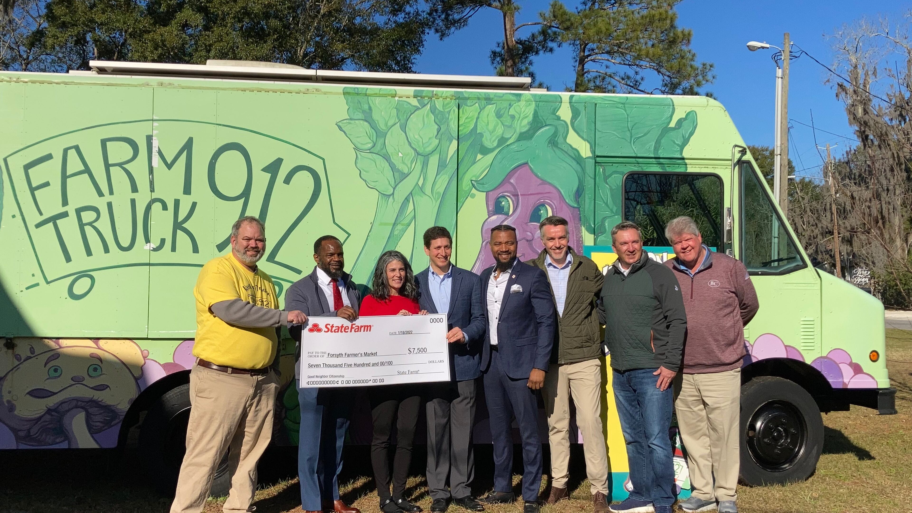 This article originally appeared on Savannah Morning News: Local State Farm agents present grant funds to Forsyth Farmer's Market for new Farm Truck 912