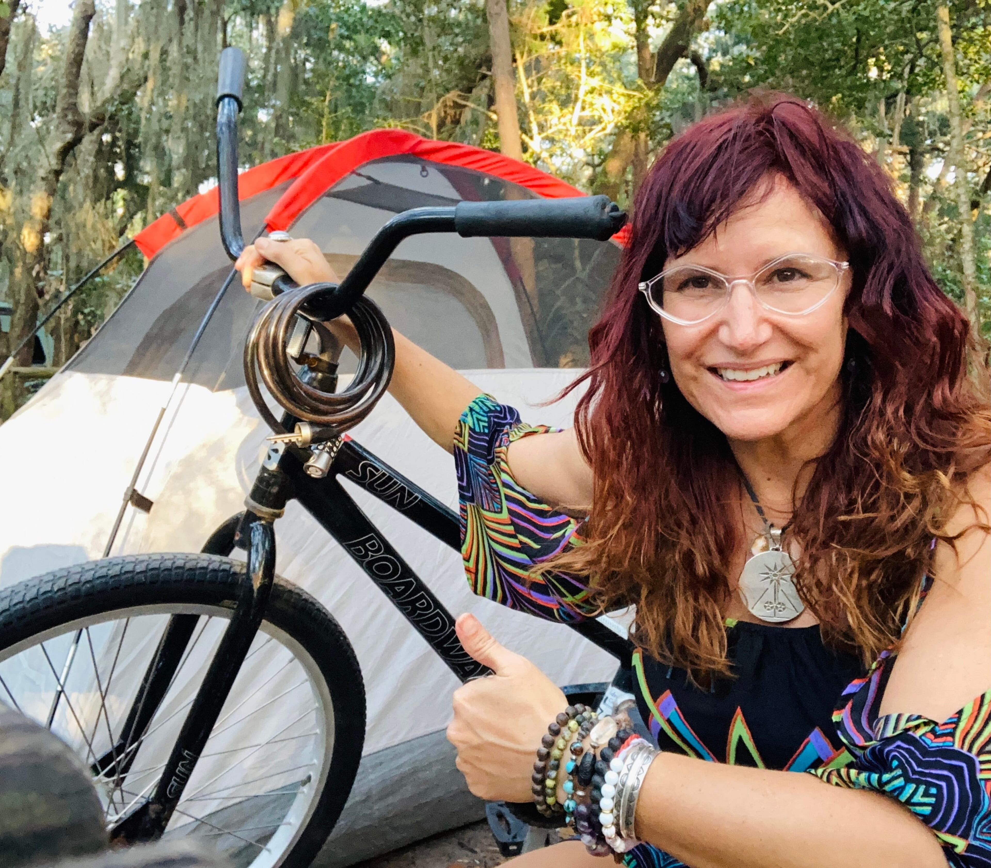 For three-and-a-half miles back to my tent, I pedal, uncovering the magic of my own power propelling me forward, arms outstretched, balanced and smiling.