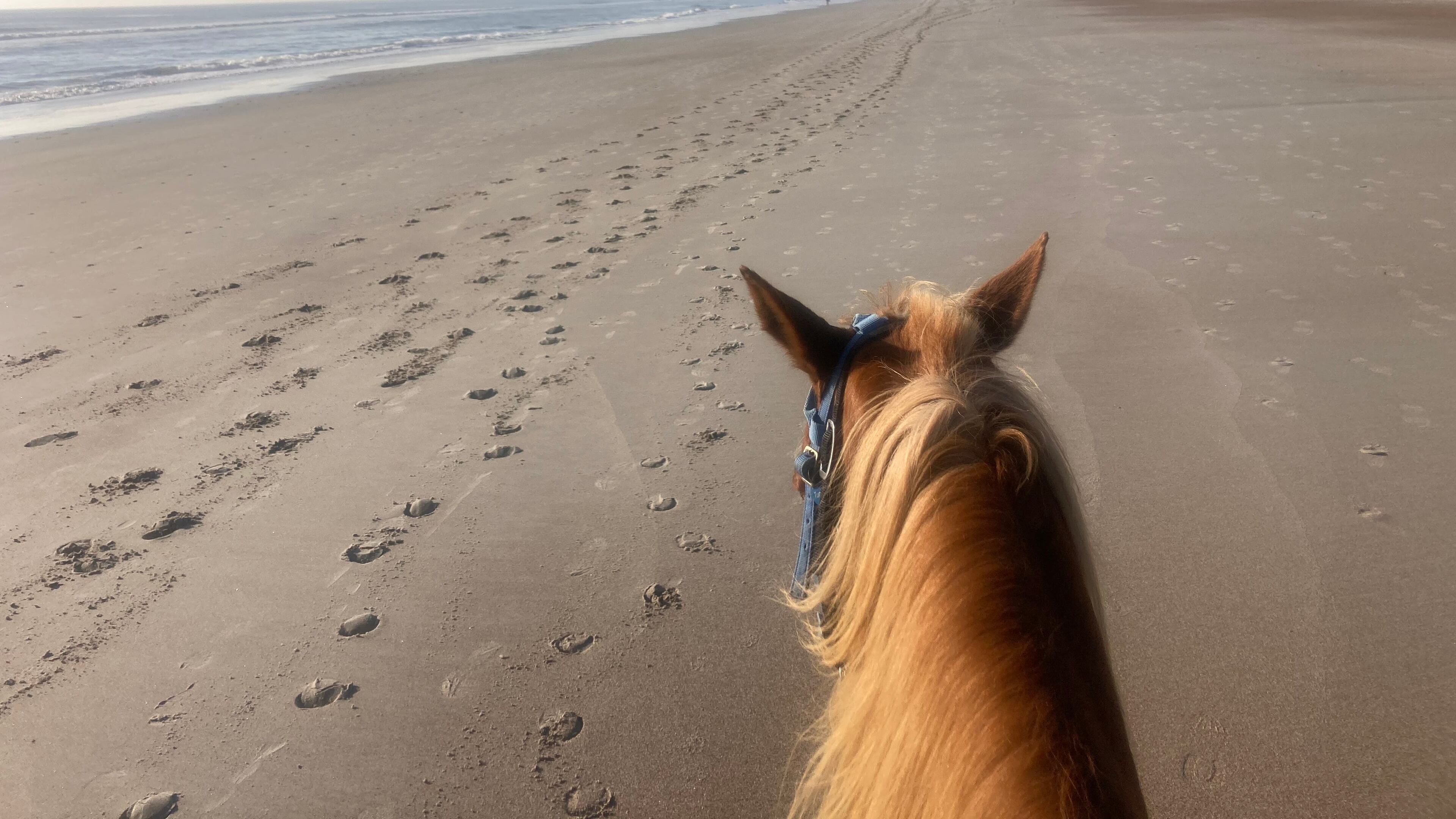 At 8 a.m., Peters Point Beach is nearly empty. The sun is warm and glowing above the Atlantic Ocean, not a cloud in the sky. My horse is attentive, almost giddy breathing in the pre-spring salt air. Robin explains that before the pandemic, we could run the horses on the beach, that for over 20 years the highlight for many was running on the beach.