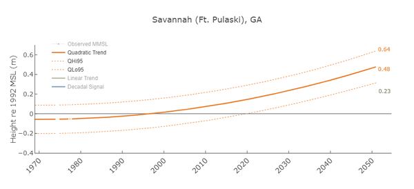 For Savannah, the tide gauge at Fort Pulaski gives scientists long-term data on the sea level in coastal Georgia. Using that longitudinal data, the researchers can predict what the future may hold and conclude that not only is the sea level rising in coastal Georgia, but the rate of how fast it is rising is quicker than in most other coastal cities they studied.