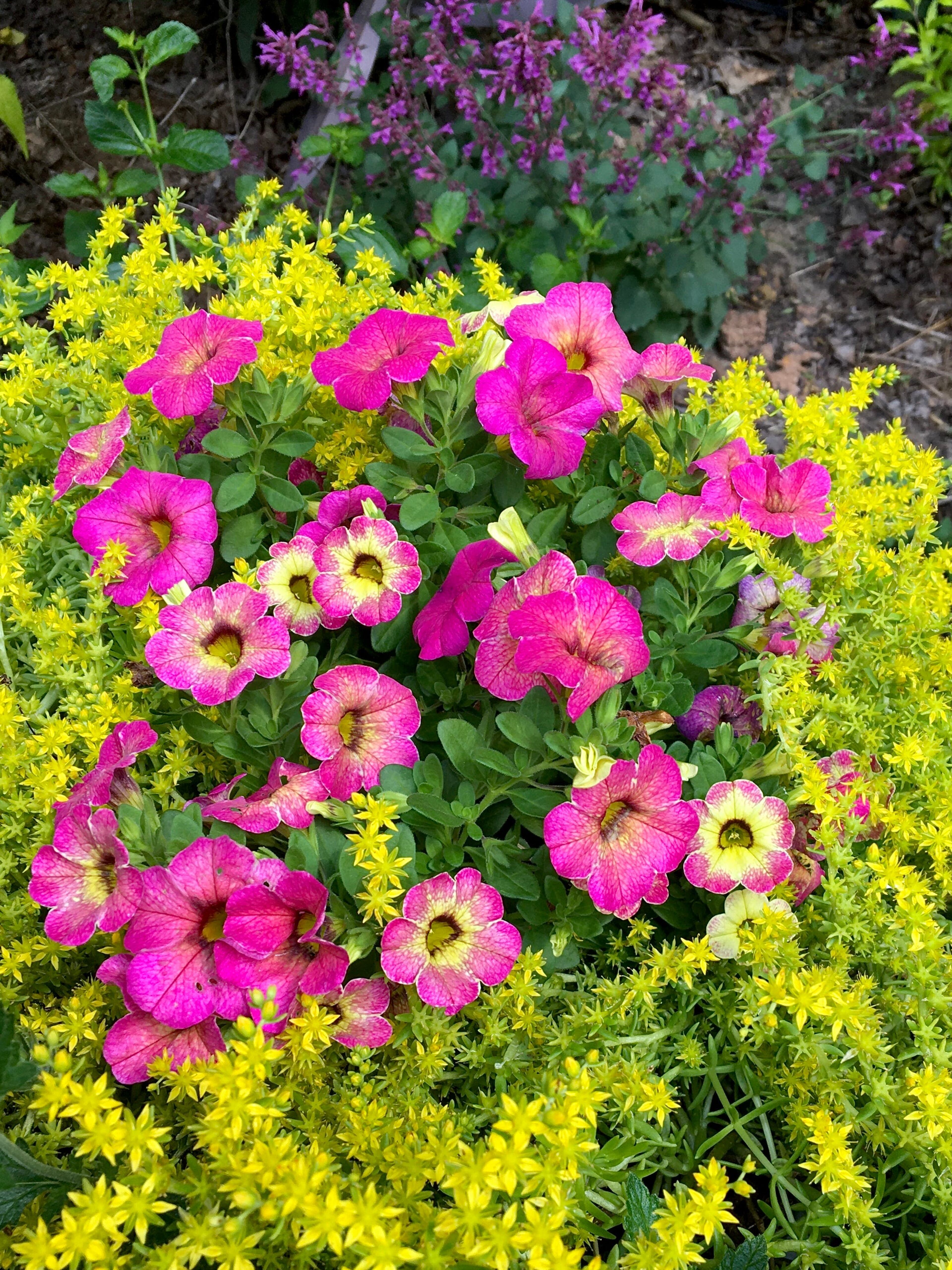 The color will work with everything except a flaming orange. That is simply The Garden Guy's opinion until I am taught otherwise by some color design guru, which usually happens. Until this point, I have been so passionate about the Superbells Punch group, I felt that was all I really needed. I still love them, but when I placed Superbells Prism Pink Lemonade in between Superbells Grape Punch and Superbells Black Currant Punch it was like the angels sang.