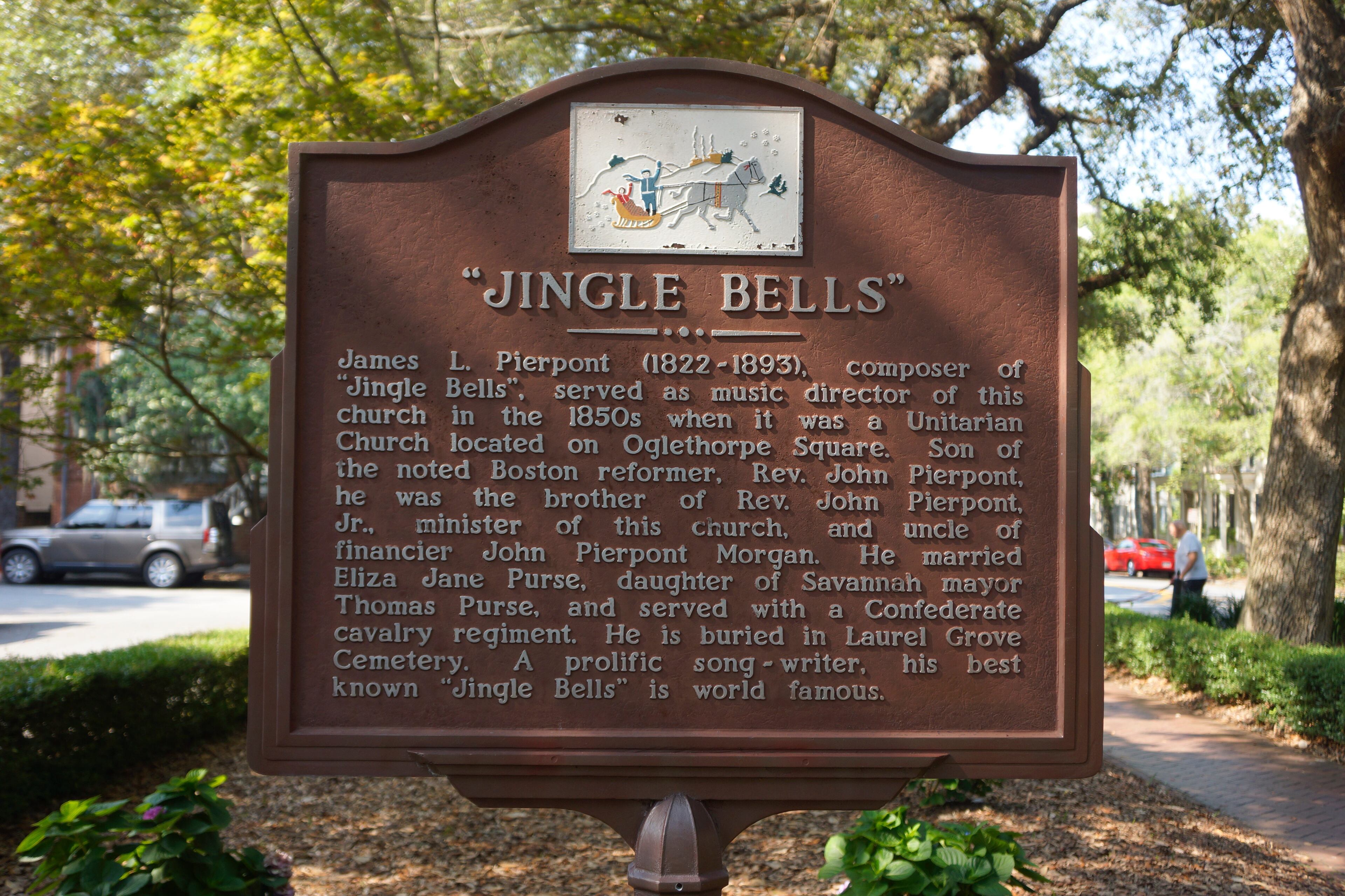 By the time Pierpont published the song, he was the organist and music director of the Unitarian Church in Savannah where his brother, Rev. John Pierpont, Jr., was minister. Georgia historians disagree with Medford’s claim to the song and believe Pierpont wrote “Jingle Bells” in Savannah when he was feeling nostalgic for New England.