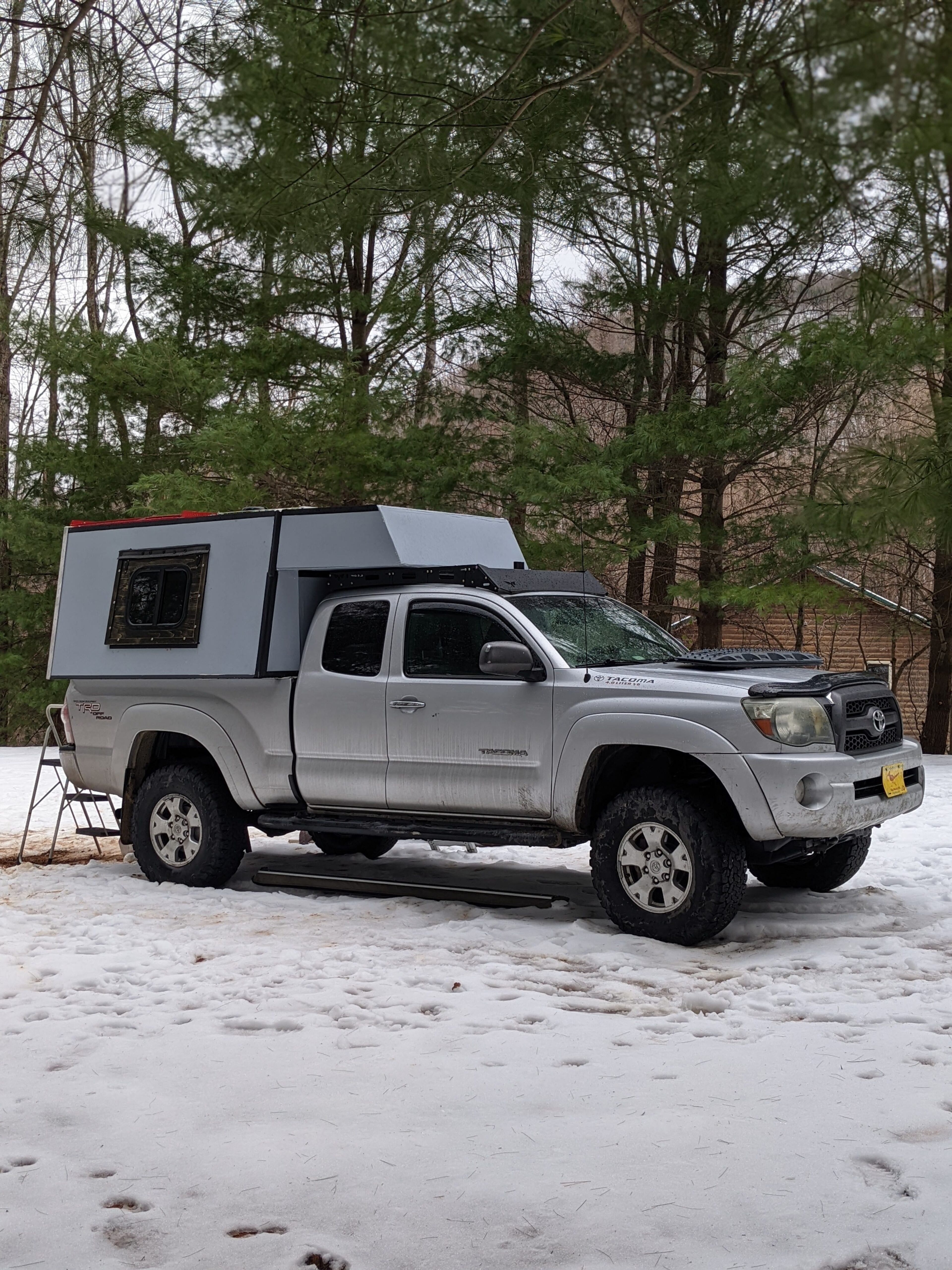 The converted cargo trailer that is “the Ark” looks a little “off,” it’s exterior electrical sockets, vents, and roof panels giving clues to it being used for something more than mere transport. The pickup truck that pulls it further adds to that feeling of intrigue with its equally odd custom camping shell attachment.
