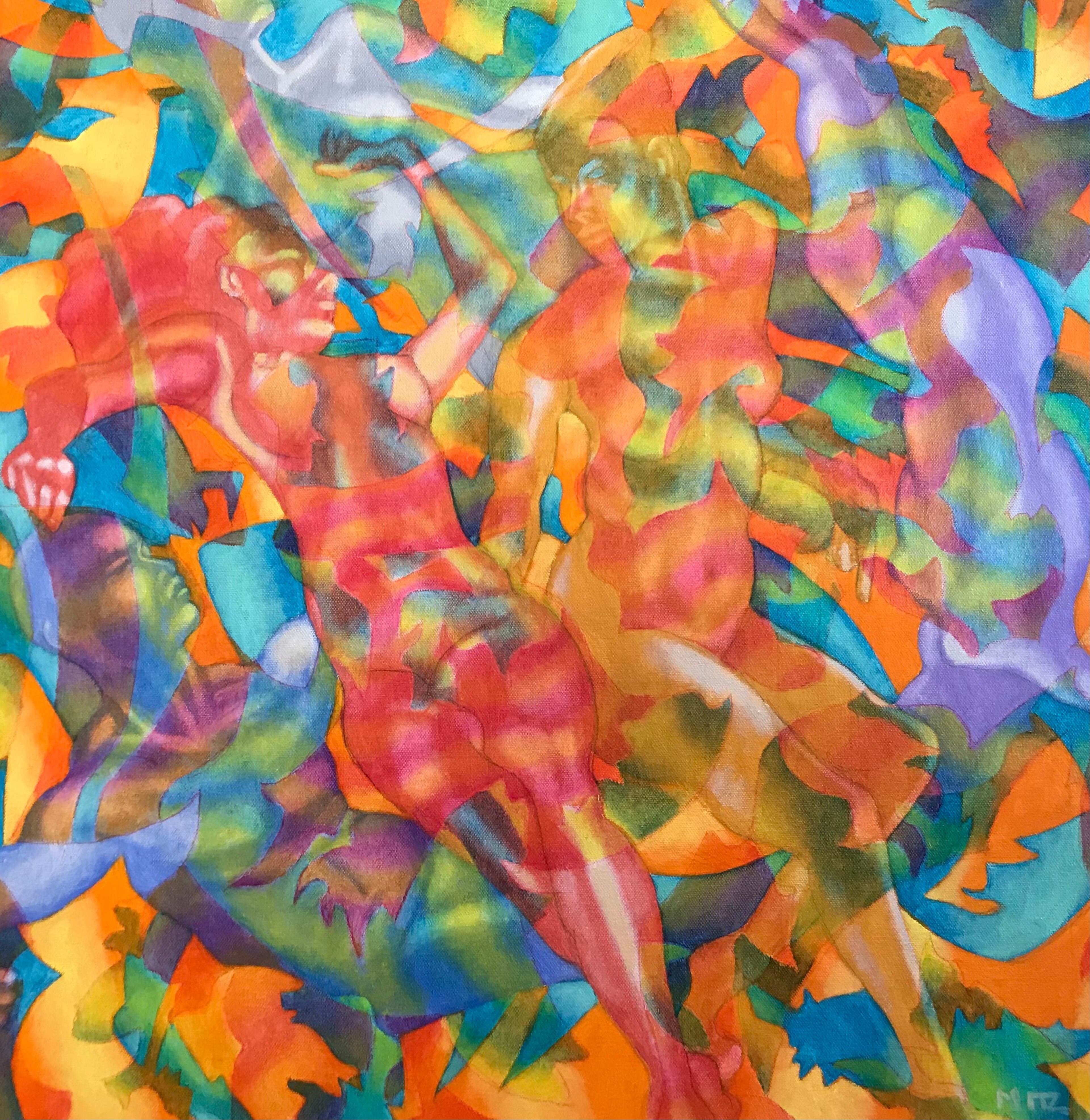 Mitz, for his part, is showing a new selection of his “polyocular paintings,” works that utilize his longtime technique of layering elements of realism and abstraction, akin to the way polyphonic music layers sound to create a unified whole.