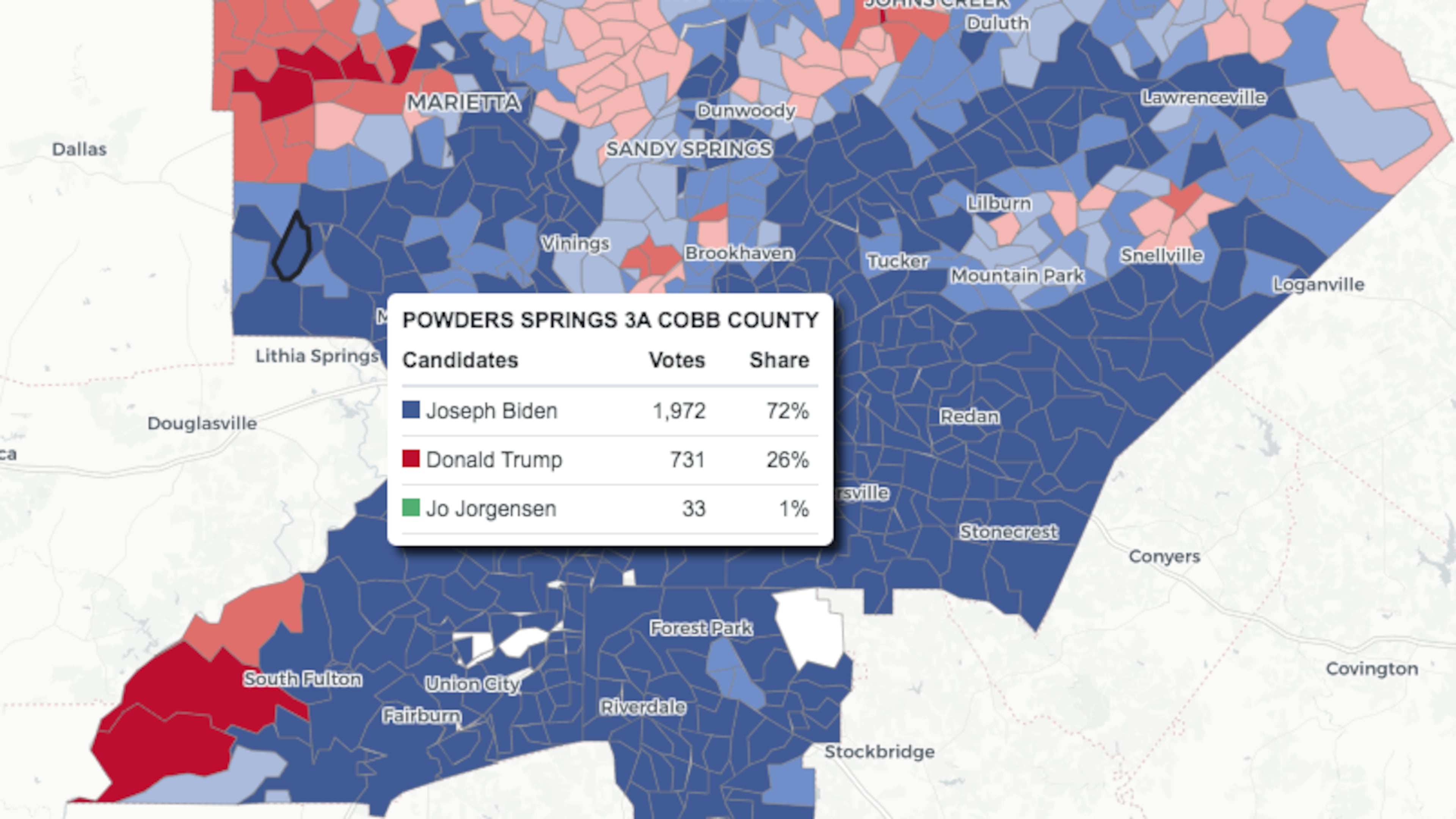 2020 Live election map: Metro Atlanta precinct results