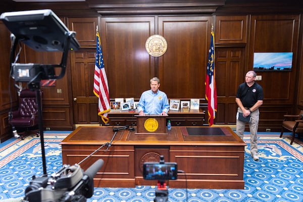 Kemp’s remarks came during a press conference at the state Capitol that opened with an update on storm damage from Hurricane Idalia in South Georgia — and unfolded just as Trump entered a not guilty plea to charges that he orchestrated a sprawling “criminal enterprise.”