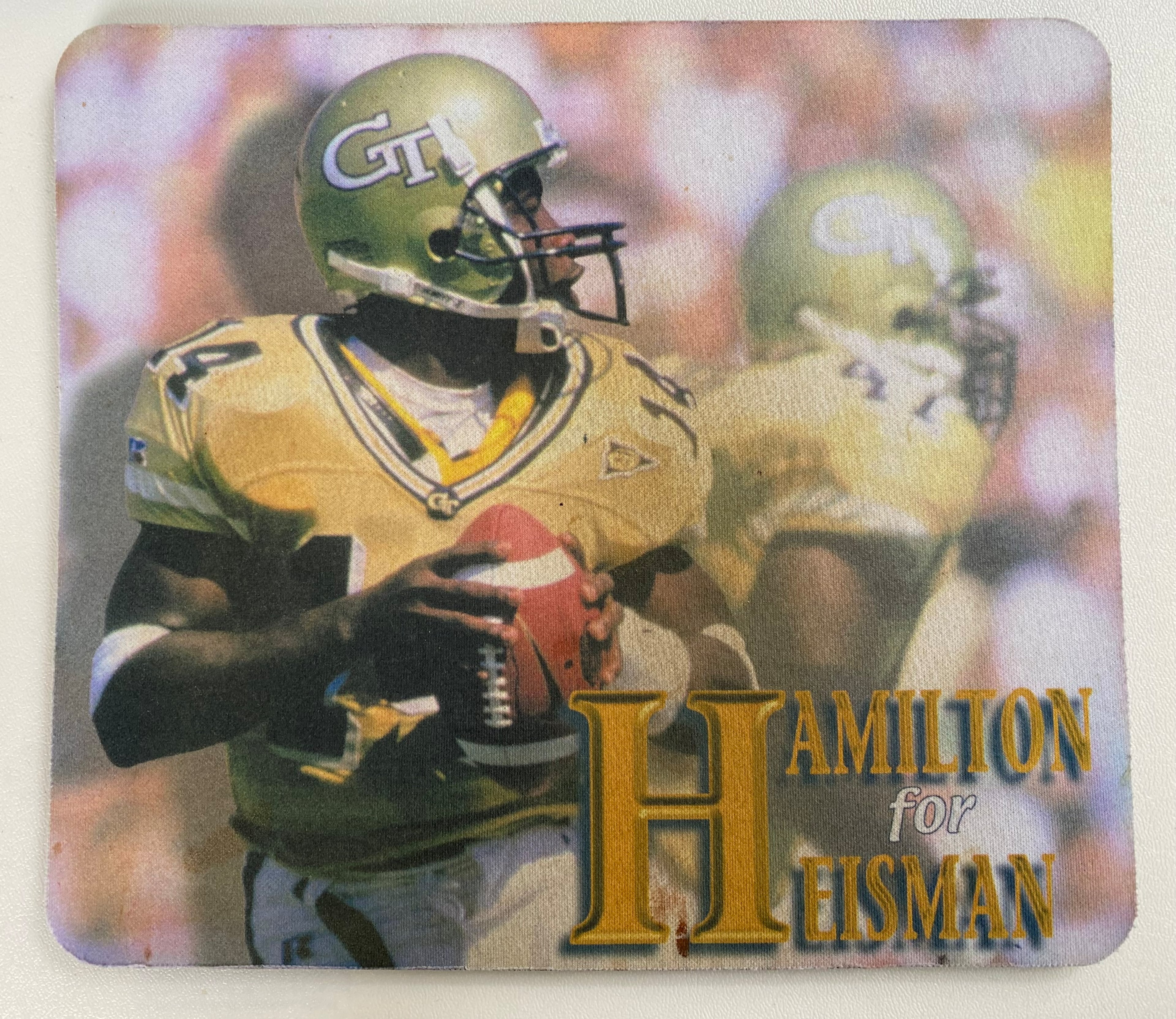 Tech threw all the support it could toward promoting Hamilton for Heisman. There were fake $10 bills with Hamilton’s face on it, a promotional highlight video with the familiar voice of Wes Durham providing the narration, and a mouse pad, which turned out to be a big hit, that was mailed out to voters.