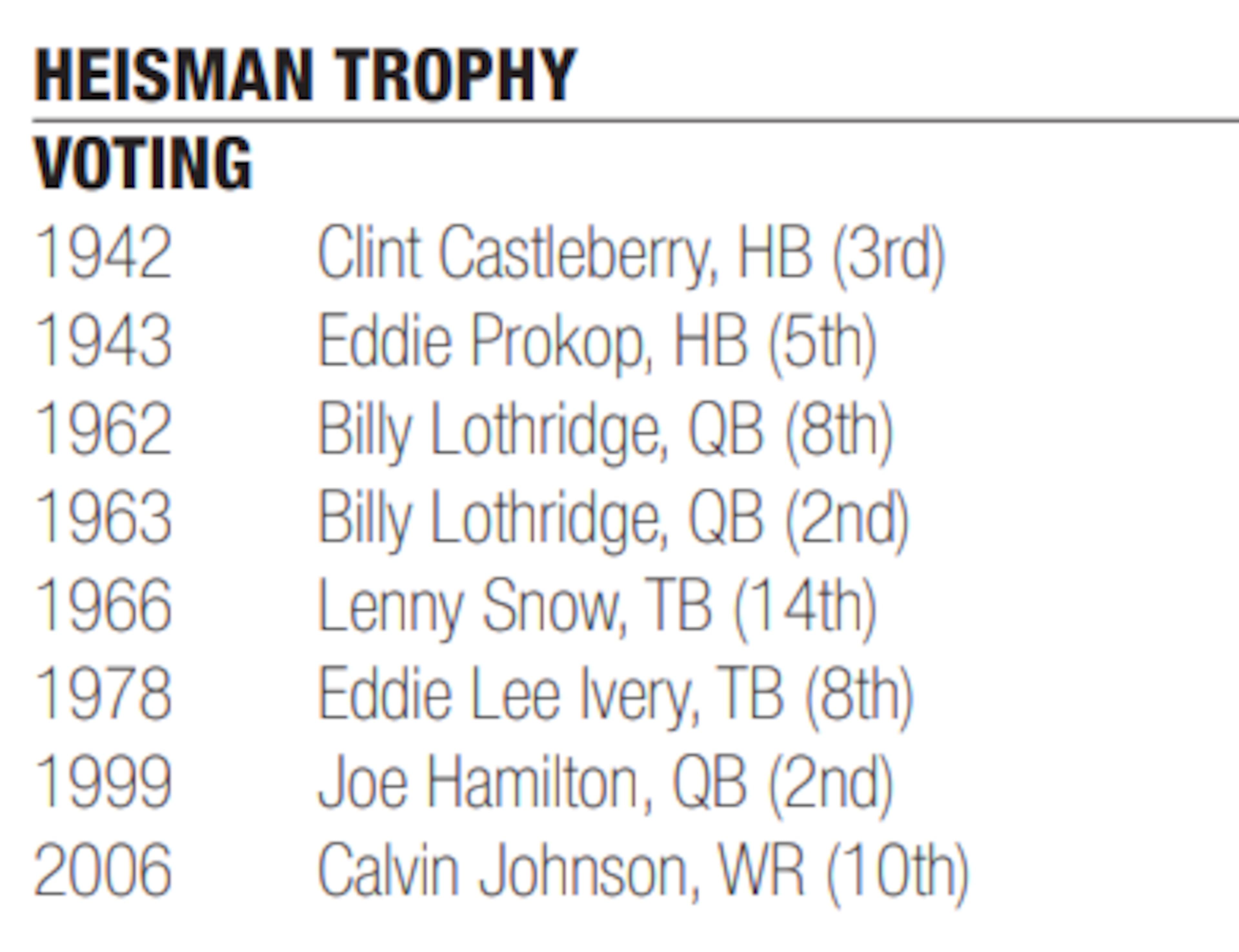 Yet Tech has never had a player claim the Heisman Trophy in 90 years of the award.