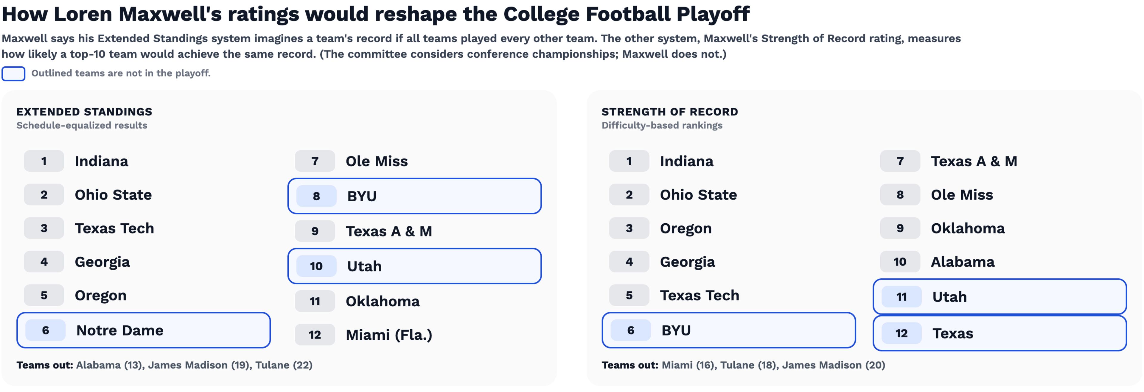 ⬅️ The list on the left uses Maxwell’s extended standings model, which essentially creates a pecking order by simulating how things would play out if every team played every other team.