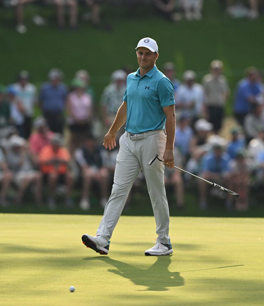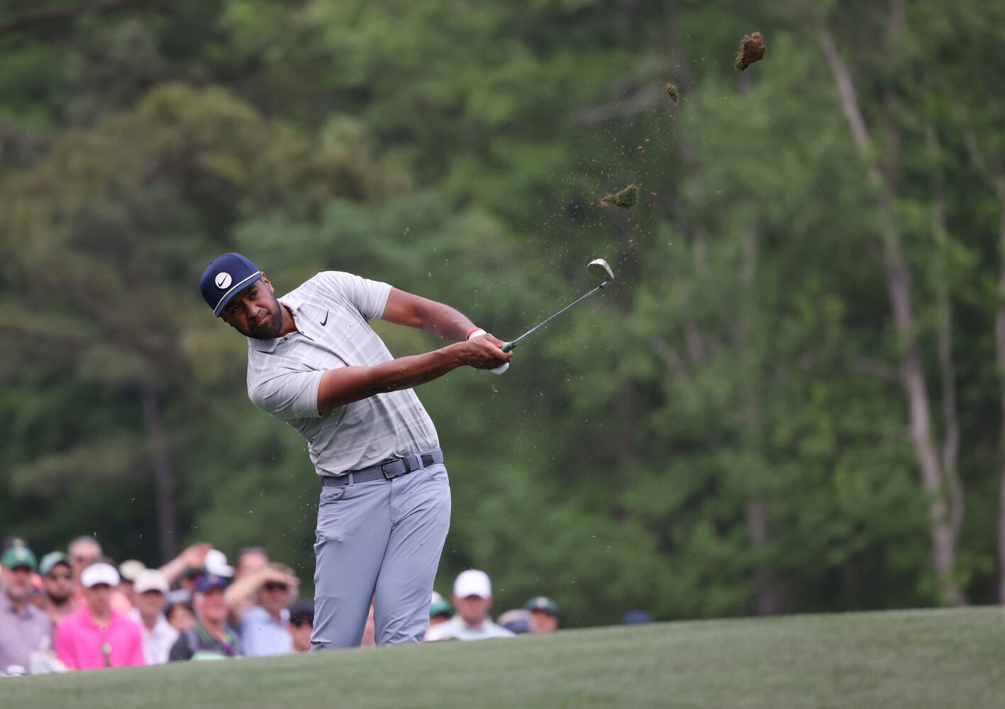 Sam Bennett hits his tee shot on 12th hole during first round of the 2023 Masters Tournament at Augusta National Golf Club, Thursday, April 6, 2023, in Augusta, Ga. (Jason Getz / Jason.Getz@ajc.com)