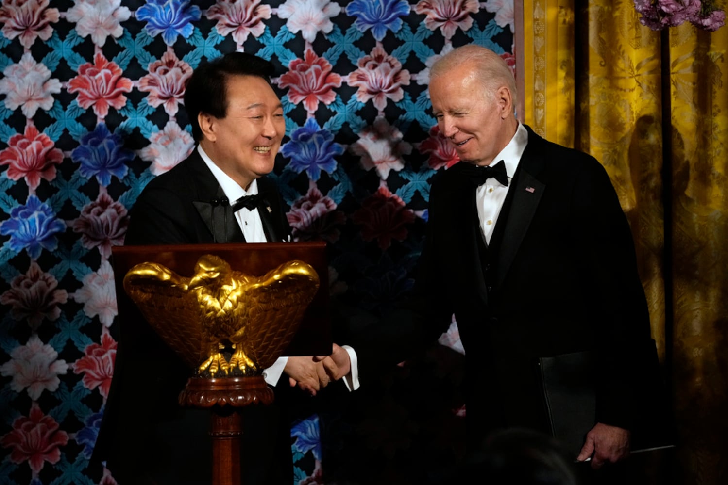 Falcons and Atlanta United owner Arthur Blank, also a co-founder of Home Depot, was among the invited guests at the State Dinner with President Joe Biden and the South Korea's President Yoon Suk Yeol at the White House Wednesday. Blank attended along with his guest, sports TV personality Jen Hale.