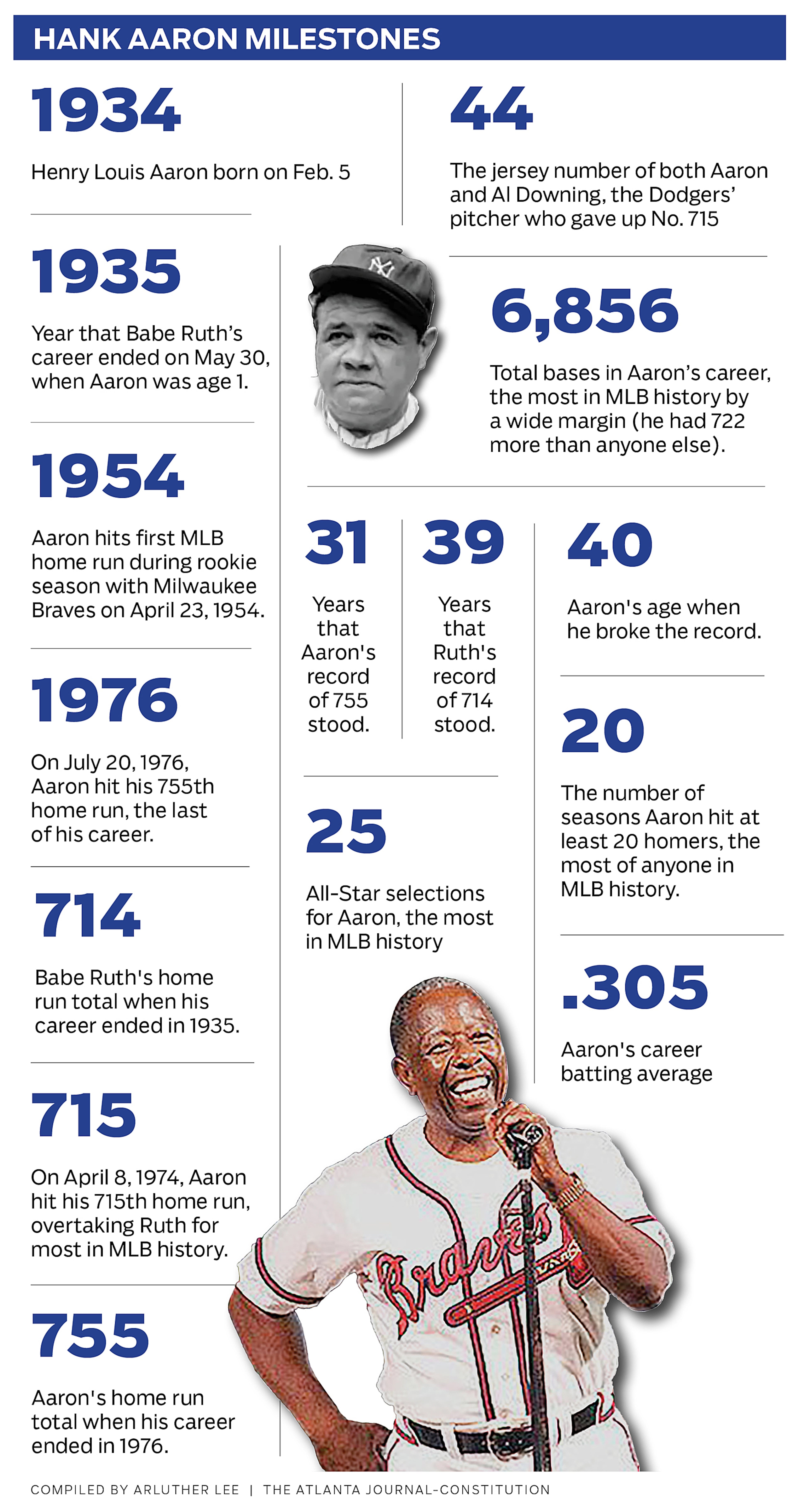 Obviously, 715 is a key number for Aaron’s career and legacy as we celebrate the 50th anniversary. Other numbers also help highlight the life and times of the baseball legend: