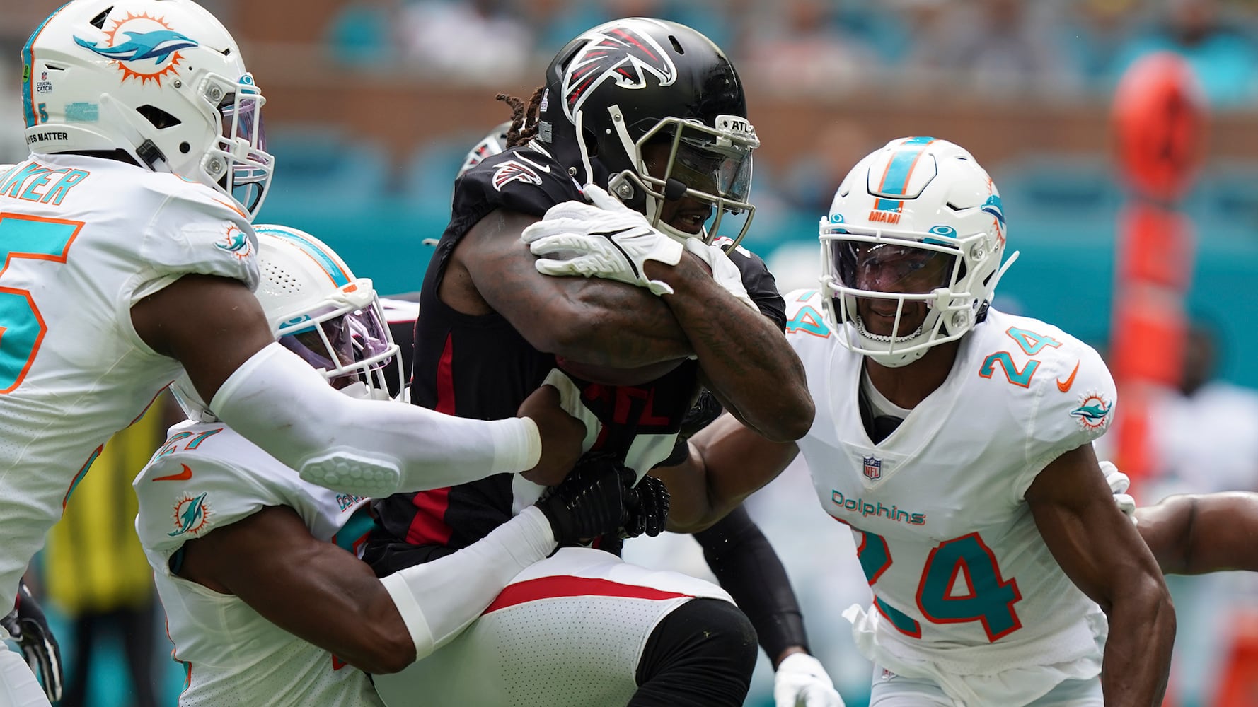 Big interceptions for safety Jaylinn Hawkins and linebacker Foye Oluokun were key to help hold off the Dolphins and second-year quarterback Tua Tagovailoa. Veteran quarterback Matt Ryan tossed two touchdowns passes, including a 49-yard bomb to lead the offense.