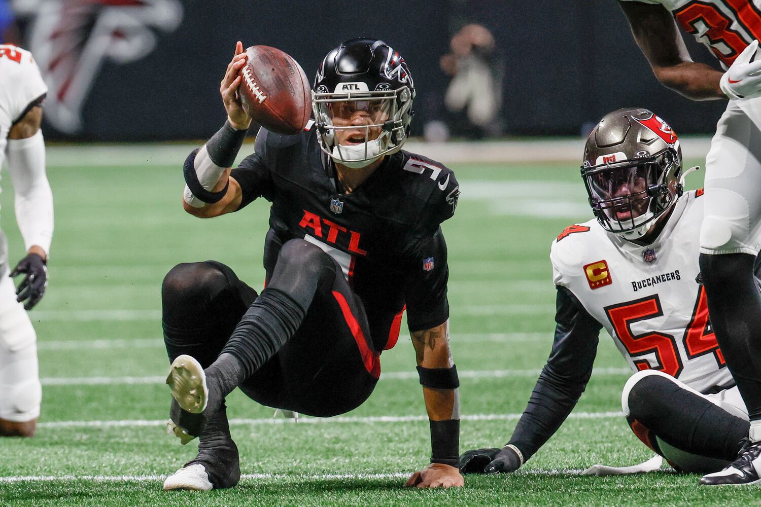 Falcons quarterback Desmond Ridder saved his best plays for late in the game, but was outdone by Tampa Bay’s Baker Mayfield.