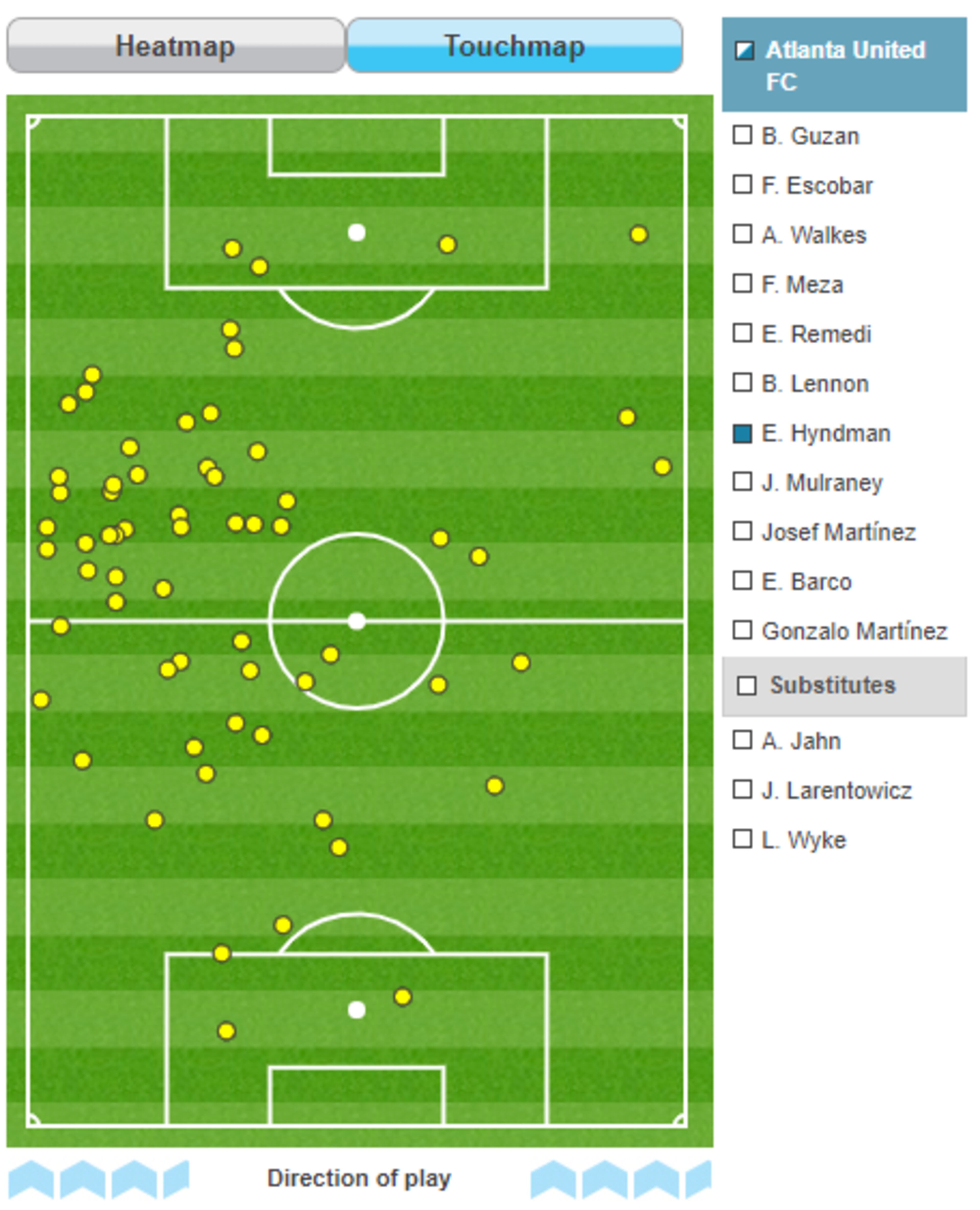 E is Emerson Hyndman, who moved from attacking midfielder last season to the “Nagbe role” as a hybrid defensive/central midfielder this season.
