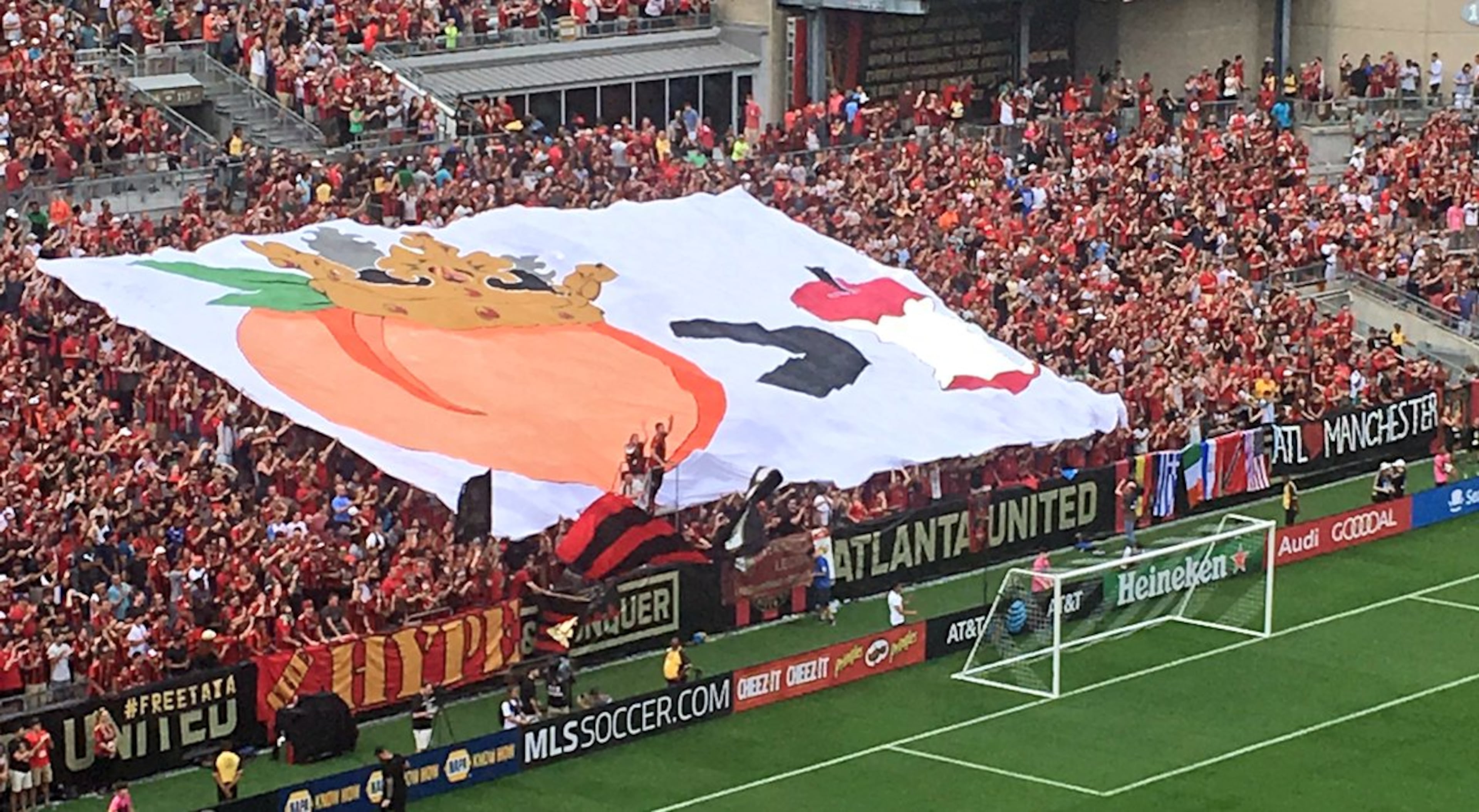 The kit was inspired by a tifo that featured a peach wearing a crown used at one of last year’s matches at Bobby Dodd Stadium.