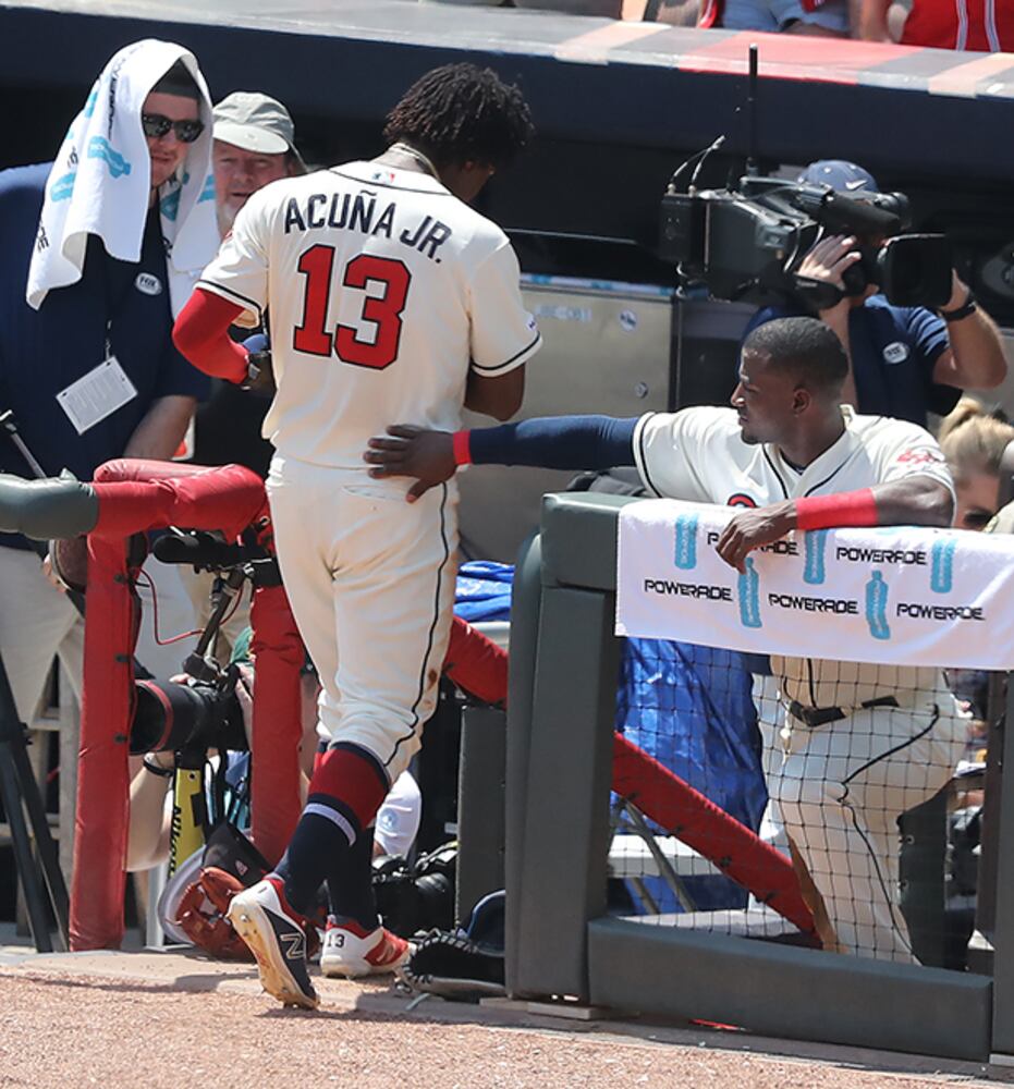 Snitker immediately knew he’d remove Acuna, but he left him in to handle center field in the fourth inning. That was because Adam Duvall needed time to get stretched out and ready to enter the game. Snitker said it would have been “unfair” to force Duvall into action on such short notice.