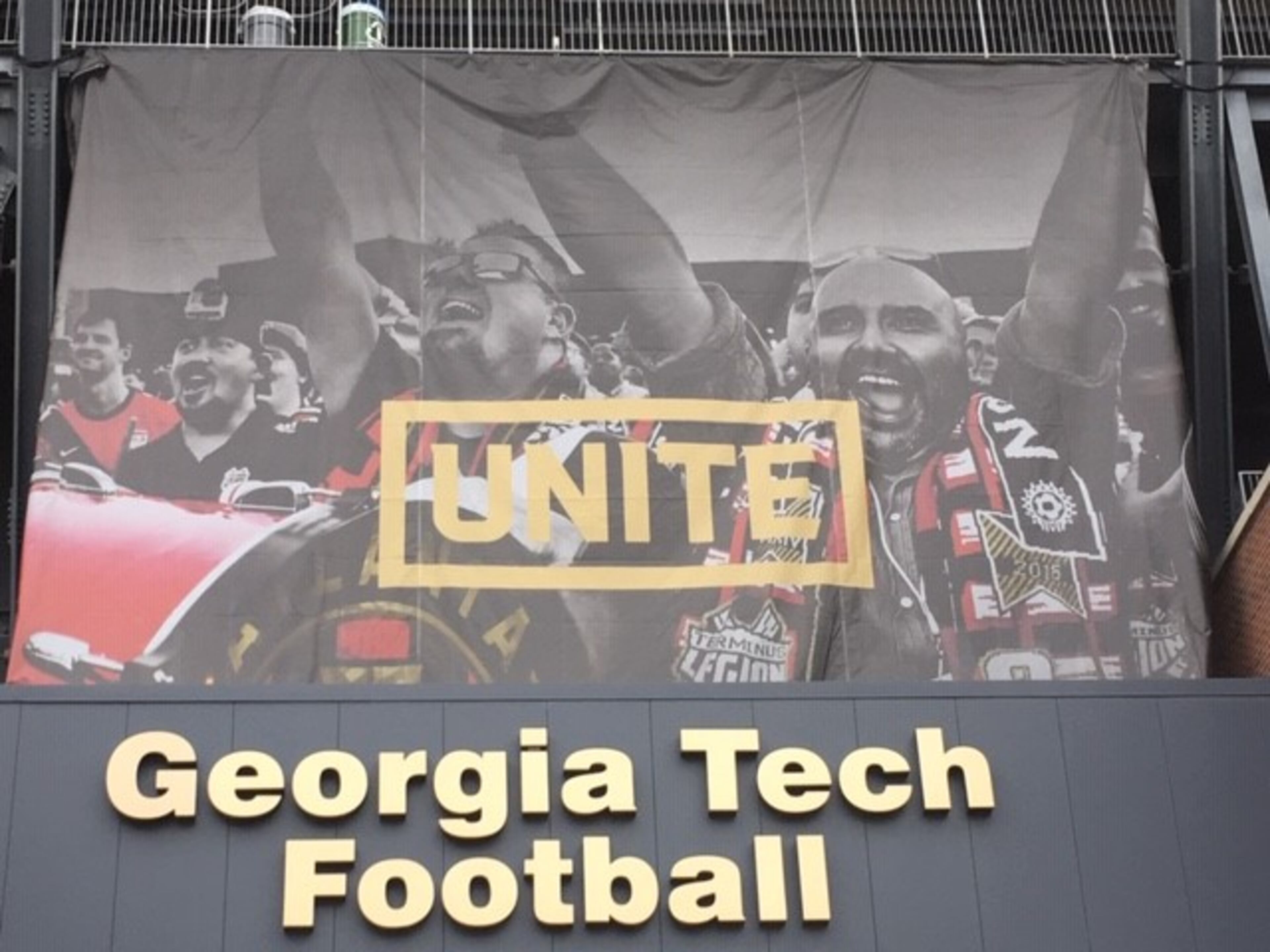 Much like the arrangement between the Falcons and Atlanta United at Mercedes-Benz Stadium, in which one team’s logos and signage aren’t readily visible when the other is hosting a game, Atlanta United began planning on how to turn Bobby Dodd Stadium from the home of the Yellow Jackets into the home of the Five Stripes, a nickname that had yet to become ingrained.