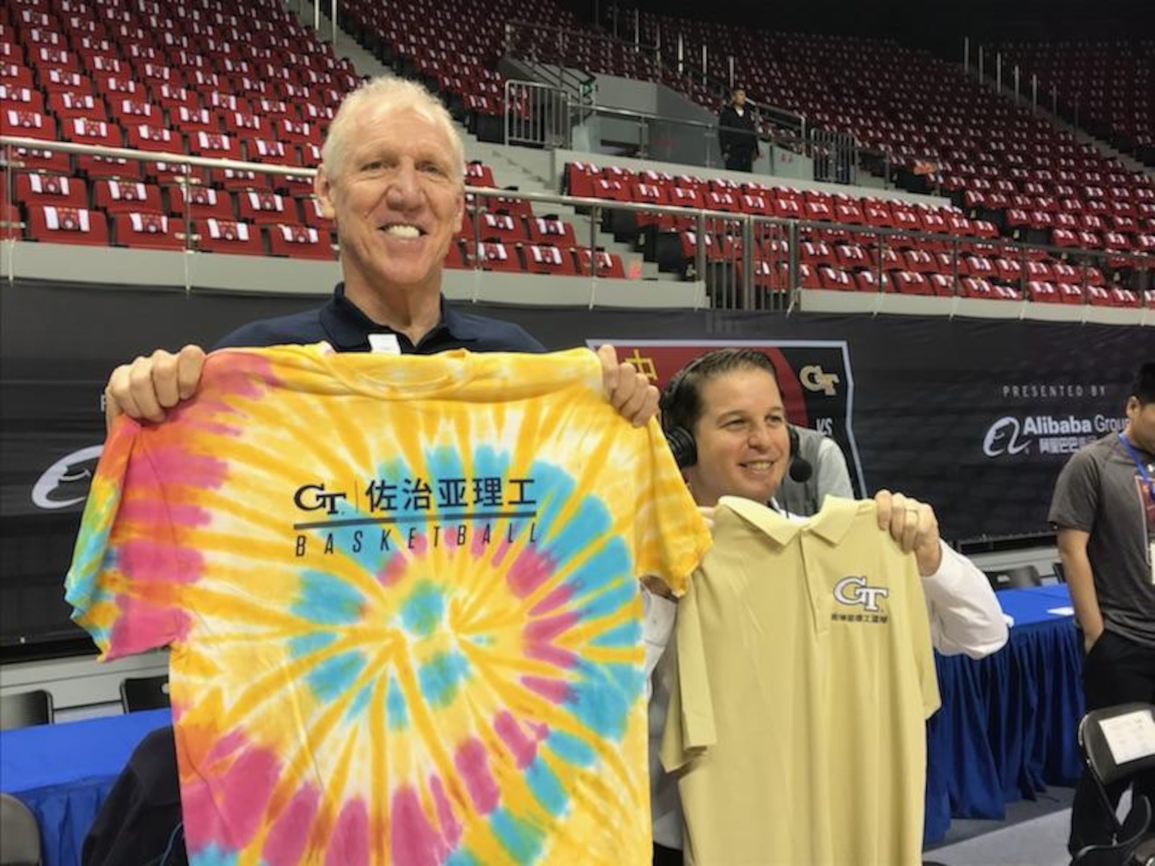 With hall of famer Bill Walton at the Alibaba campus in Hangzhou. Alston, a graduate transfer guard from Lehigh, started in his first game with the Jackets.