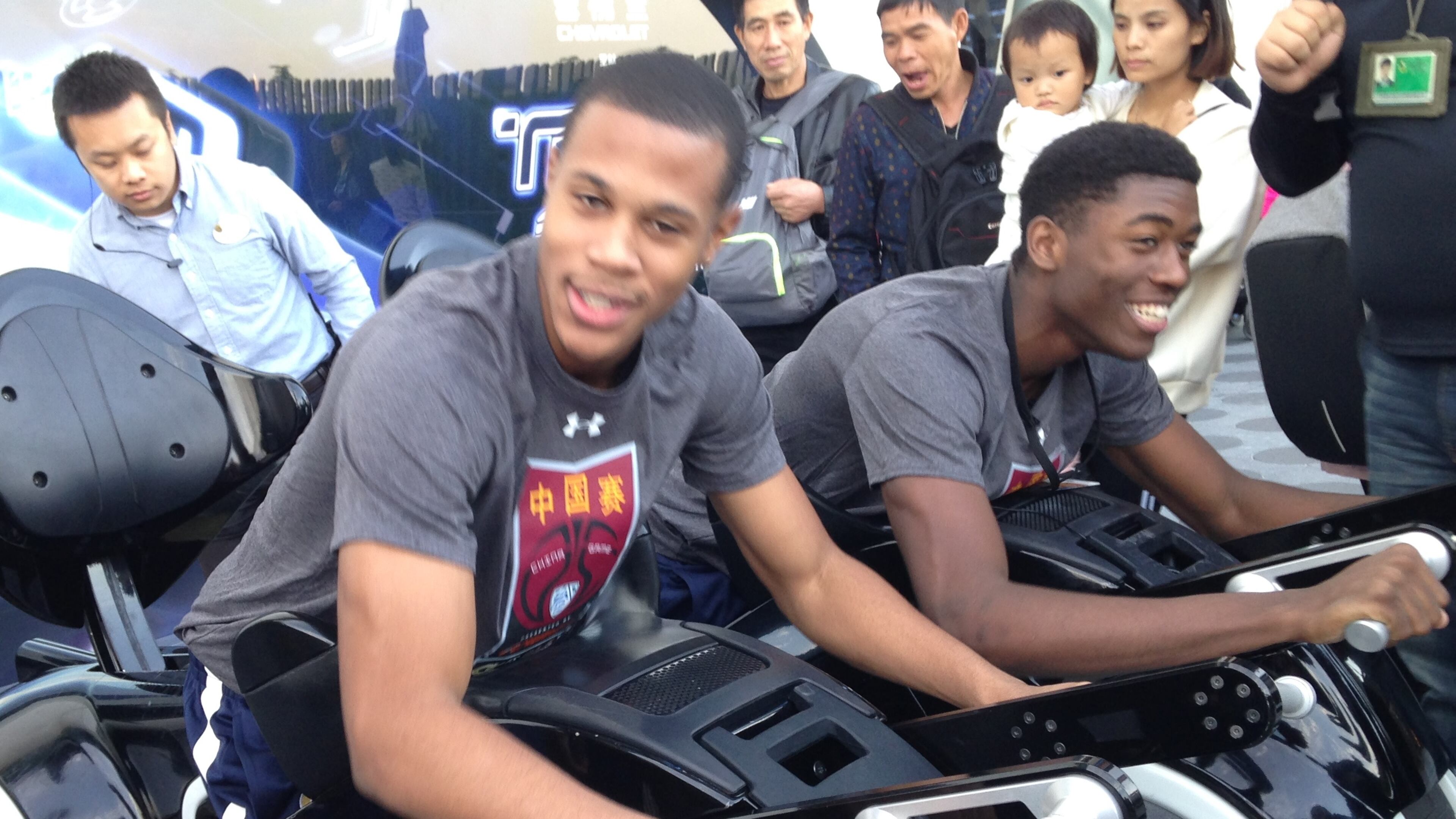 The team practiced in preparation for its season opener against UCLA before spending the afternoon at Shanghai Disney Resort, where, among other things, freshmen Evan Jester (closer to camera) and Moses Wright tried out a model of the Tron roller-coaster. How the day looked in pictures.